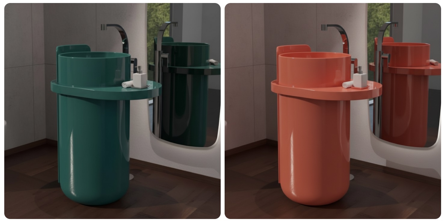 Цветовая палитра открывает возможности для эксперимента: от строгих белых и серых до насыщенных природных оттенков, подчеркивающих пластичность формы. Матовые версии придают глубину и энергию, а глянцевые усиливают игру света.