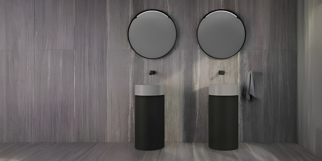 Коллекция Norma — воплощение архитектурной чистоты. Отдельно стоящая раковина, созданная как монолитная колонна с интегрированной чашей, поражает своим спокойным совершенством.