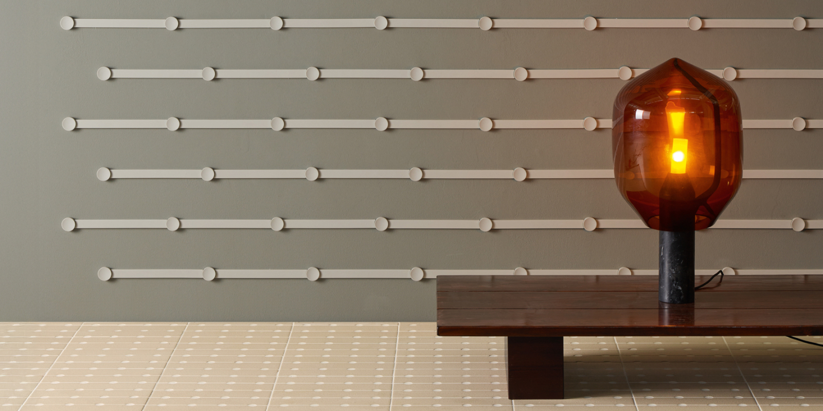 Идея Aria принадлежит визионеру современного дизайна Ронану Буруллеку. «Идея Aria не в том чтобы создать ритм — рисунок, композицию. Это музыкальная партитура, созданная специально для керамики», — говорит он. И это не метафора. Коллекция представляет собой модульную систему для настенных инсталляций, где тонкие стержни, подобно нотам на нотном стане, соединяются миниатюрными круглыми элементами-кнопками. Рождается открытая, дышащая решетка, которая не скрывает стену, а вступает с ней в сложную визуальную связь, придавая пространству глубину, динамику и невесомость.
