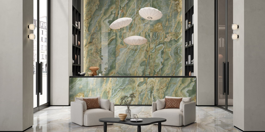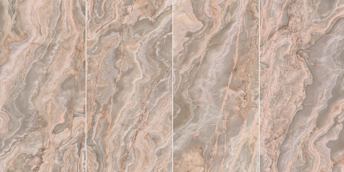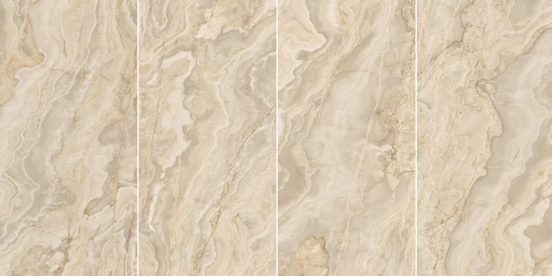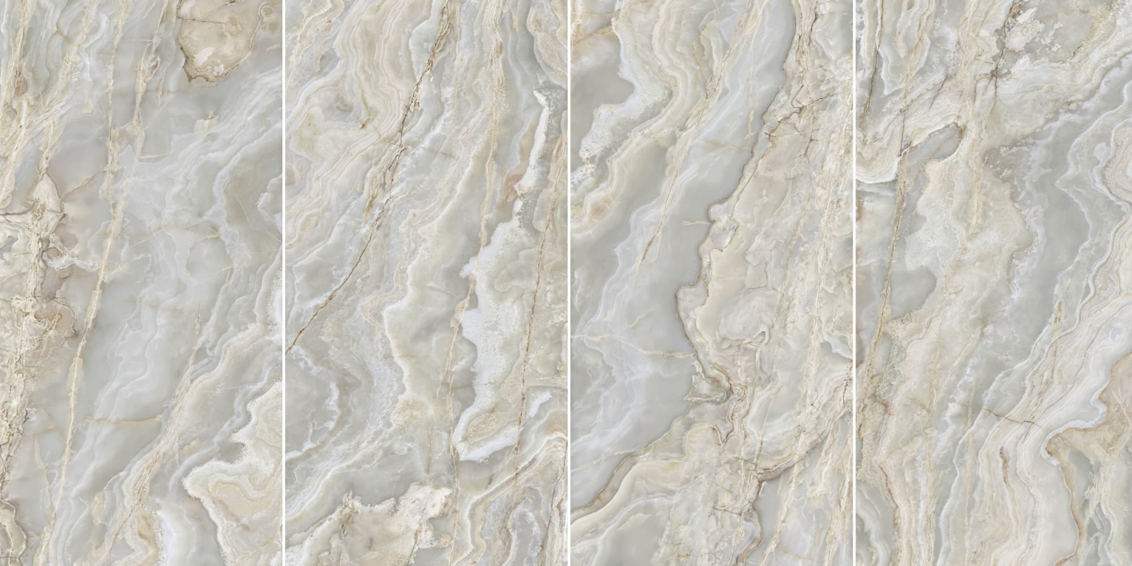 Керамогранит Onice Iride дает возможность прикоснуться к истории, пригласить в свой дом очарование природного камня. В основе коллекции — легендарный оникс, камень, который веками восхищал правителей и художников от Персии до Мексики. Дизайнерам удалось не просто повторить его рисунок, а передать суть — внутреннее свечение, игру слоев и вневременную элегантность. Мягкие переливы молочных, медовых и изумрудных оттенков одновременно создают ощущение тепла и глубины. Уникальный рисунок каждой плитки гарантирует, что ваш интерьер будет по-настоящему эксклюзивным. Onice Iride – это идеальное решение для тех, кто ценит игру света и натуральные материалы.