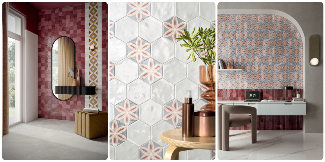 Small раскрывается по-разному в каждом пространстве. На кухне эта плитка напоминает о средиземноморской традиции: фартук превращается в яркую мозаику, которая оживляет пространство и задаёт тон всему интерьеру. В ванной комнате она дарит ощущение свежести, как будто стены омыты прозрачной водой. В гостиной коллекция работает тоньше: отдельные акценты на стенах или в нишах становятся визуальным центром, к которому возвращается взгляд. В общественных пространствах — кафе, ресторанах, отелях — Small задаёт атмосферу лёгкости и праздника, будто интерьер улыбается своим посетителям. Не стоит забывать и о декоративных линиях Trend и Amalfi. Первая звучит современно и графично, подчёркивая игру геометрии. Вторая — словно приветствие из южных двориков, расписанных майоликой, где каждая плитка несёт в себе солнце и море.