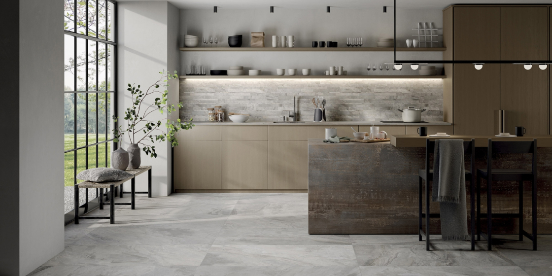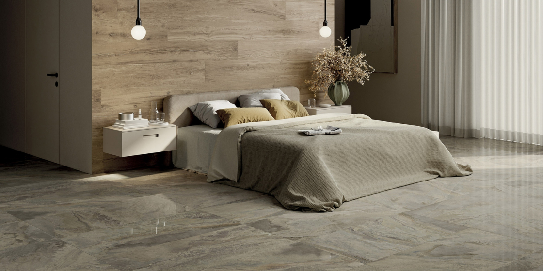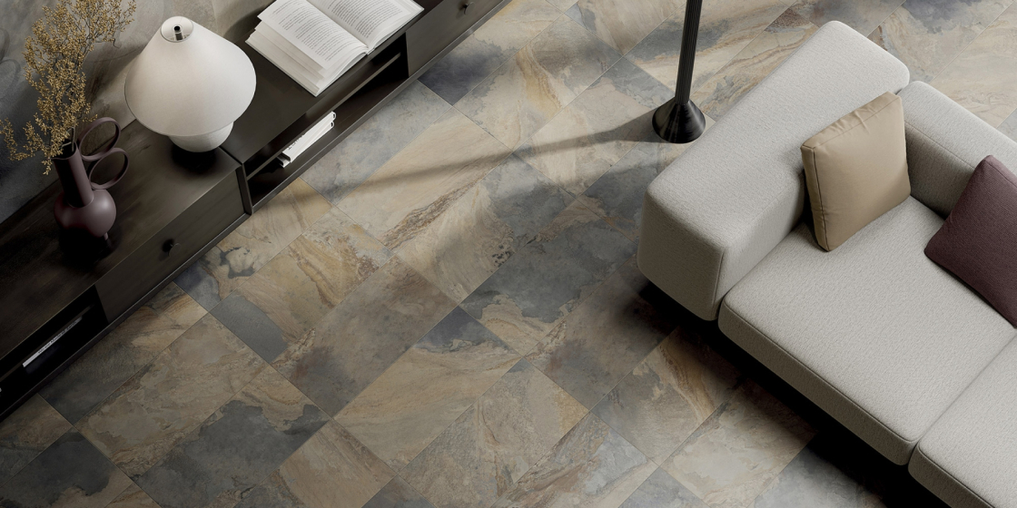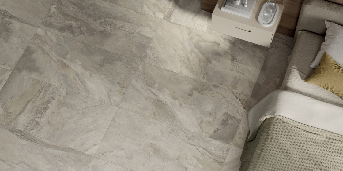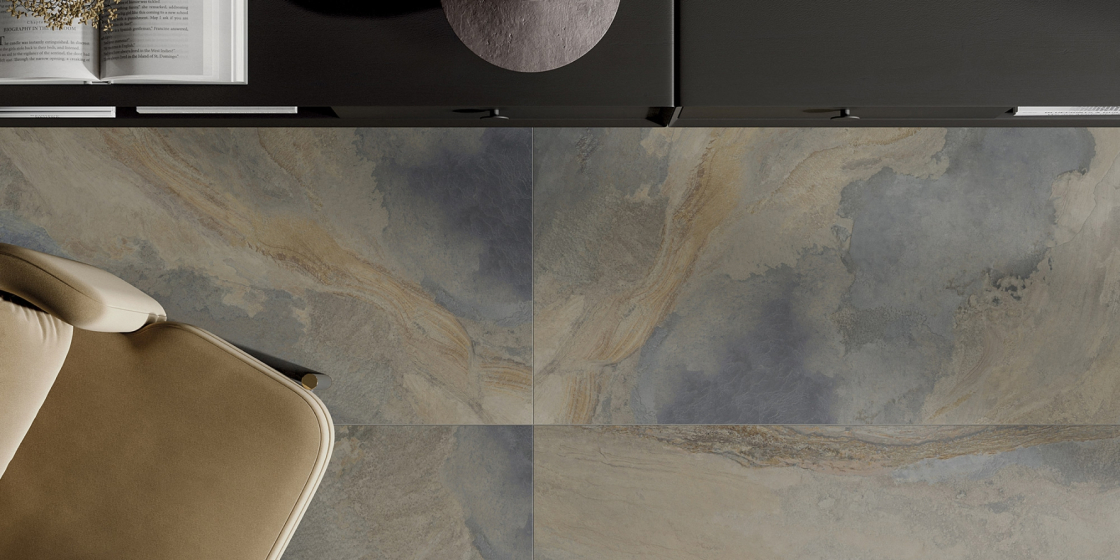 В каждой плитке слышится история тысячелетий, застывших в слоях камня. Резкие контрасты и насыщенные прожилки создают живую графику поверхности, а отделка Materic Touch подчёркивает каждую деталь так, что хочется провести рукой и ощутить глубину рельефа.