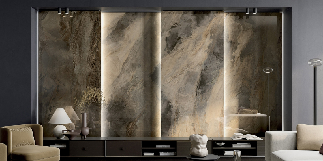 Форматы коллекции позволяют воплощать идеи крупного масштаба. Большие плиты создают монолитные поверхности, где рисунок камня раскрывается во всей полноте. Такие плоскости становятся не просто облицовкой, а фоном, на котором разворачивается жизнь.