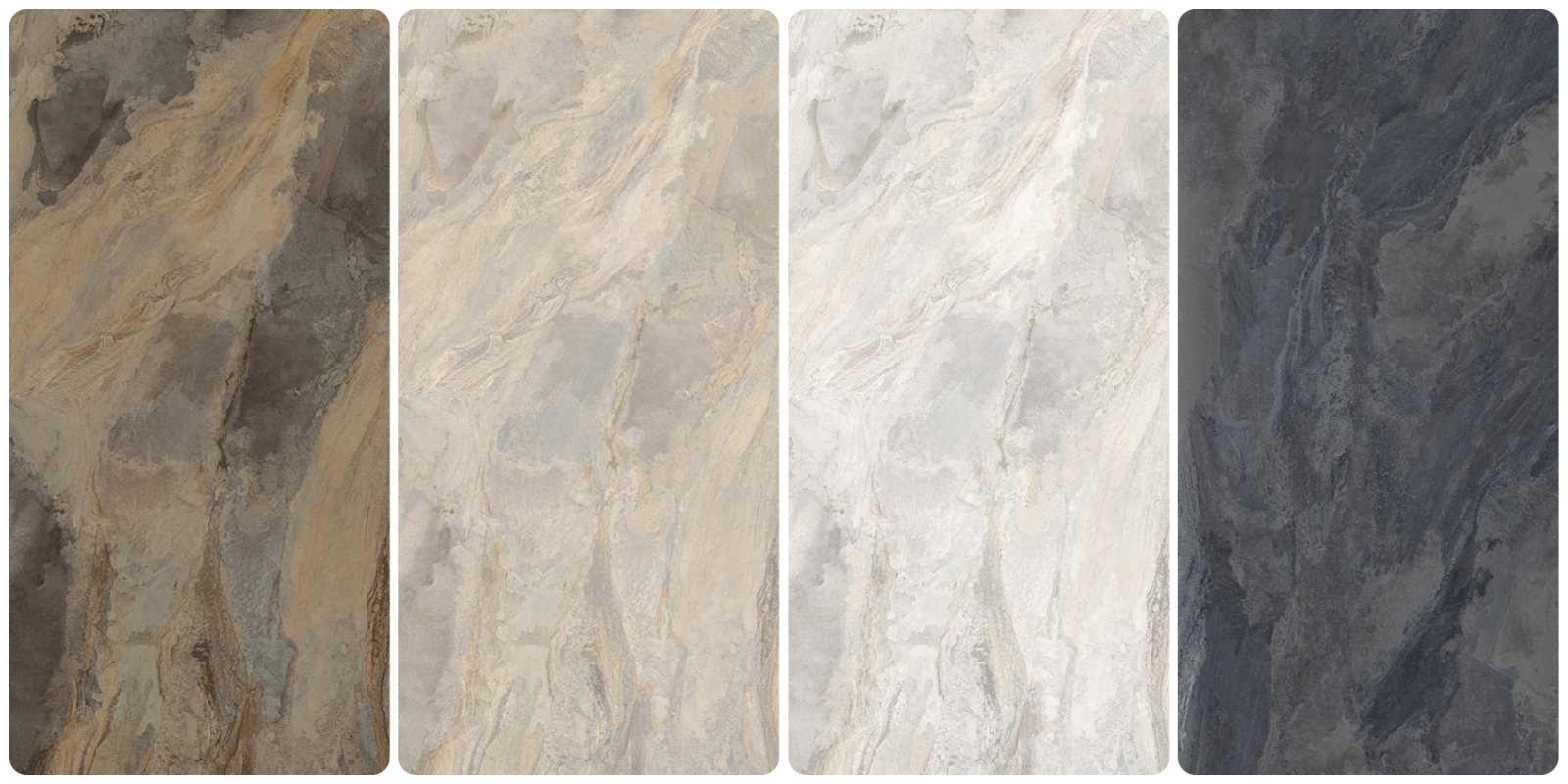 Коллекция представлена в четырёх оттенках — от светлых и мягких, напоминающих утренний туман над скалами, до графитово-глубоких, как камень в предвечерних сумерках. Эта палитра даёт дизайнеру возможность работать с пространством как с холстом: создавать интерьеры спокойные и умиротворённые или, наоборот, драматичные и наполненные силой.