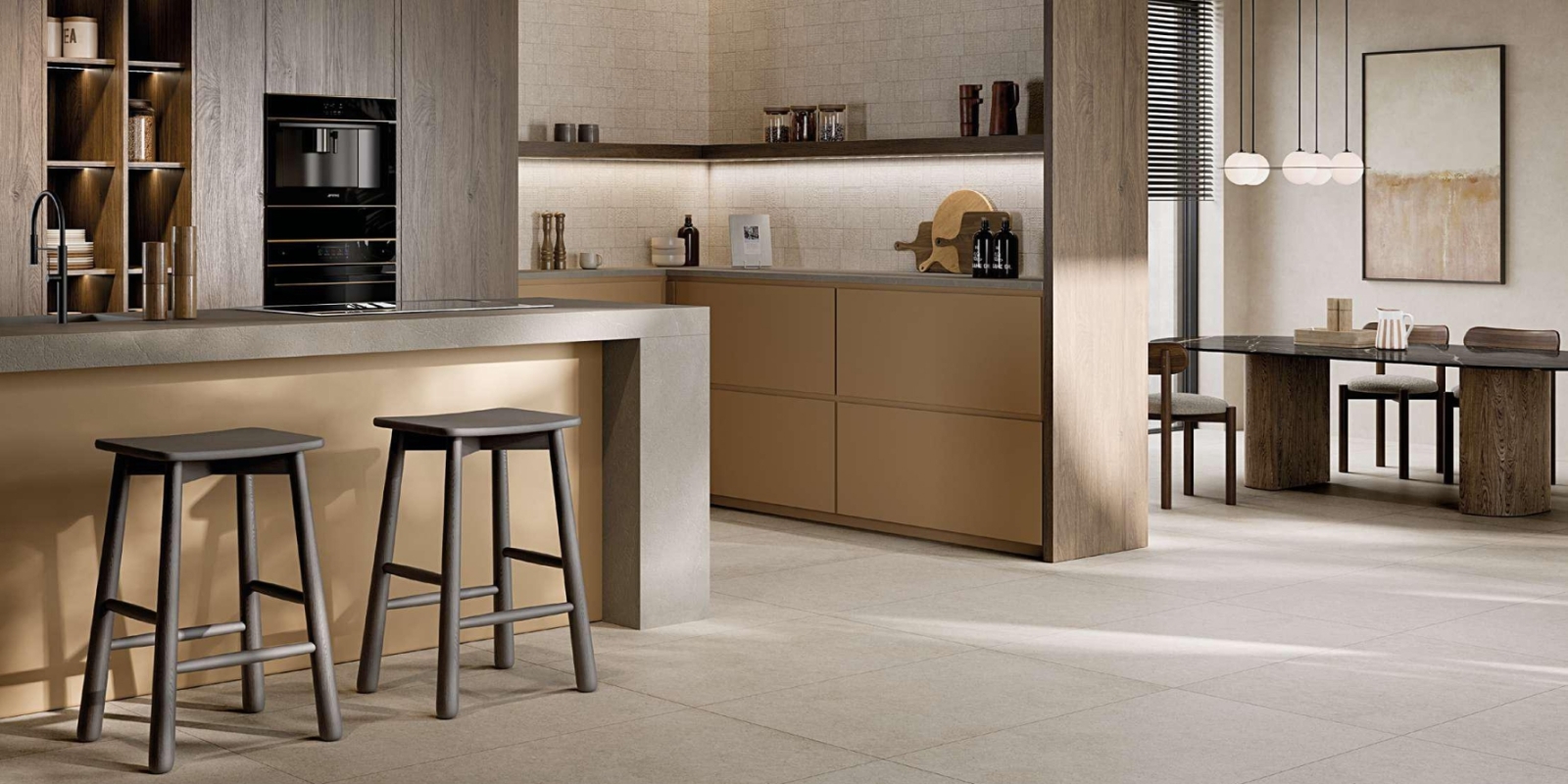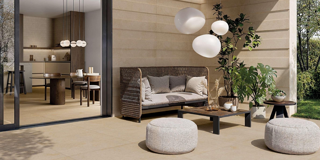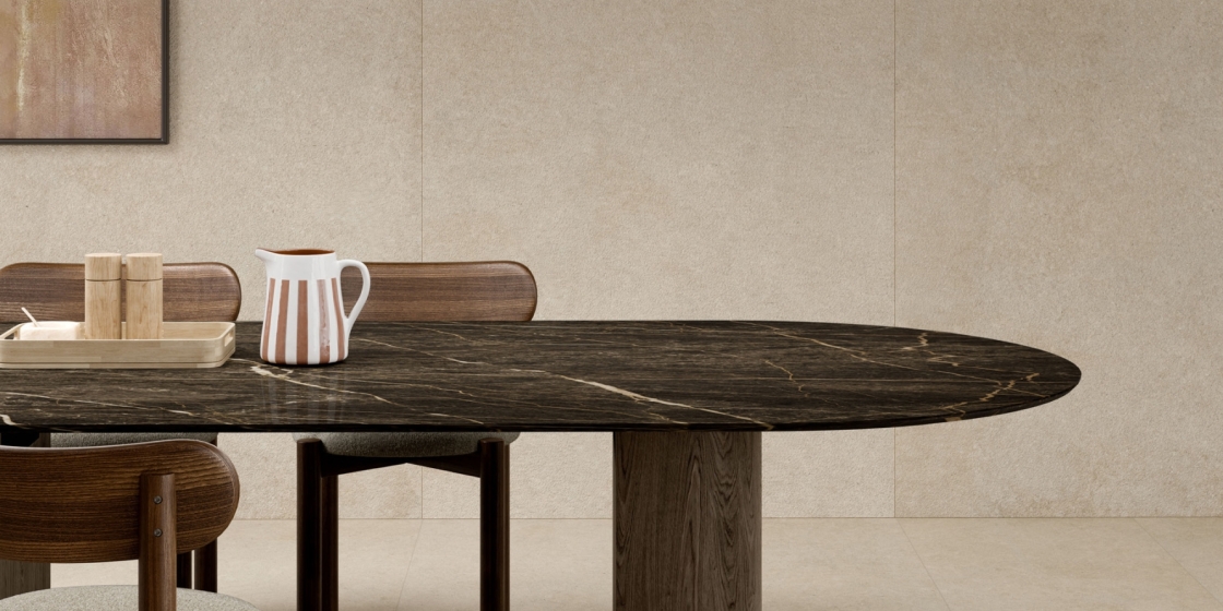 Коллекция включает плиты разной толщины и масштабов, что позволяет использовать её на стенах, на полу, в мебели, в архитектурных деталях — от кухонных островков до облицовки каминов и фасадов ниш. Она создает ощущение непрерывности, благодаря чему интерьер воспринимается цельным. Сдержанная палитра делает возможным сочетание Moon Cream с натуральным деревом, бетоном, латунью и мягкими тканями.