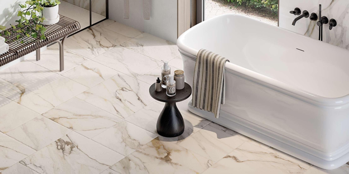 Venezia переосмысляет знаковые мраморные коллекции бренда — Statuario Reale, Macchia Antica, Imperial Navona, Black Gold, — но делает это без монументальности и героической патетики. Там, где классические линейки La Fabbrica звучат уверенно и масштабно, Venezia переходит на камерный тон.
