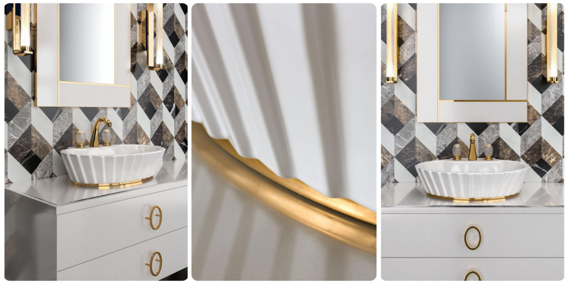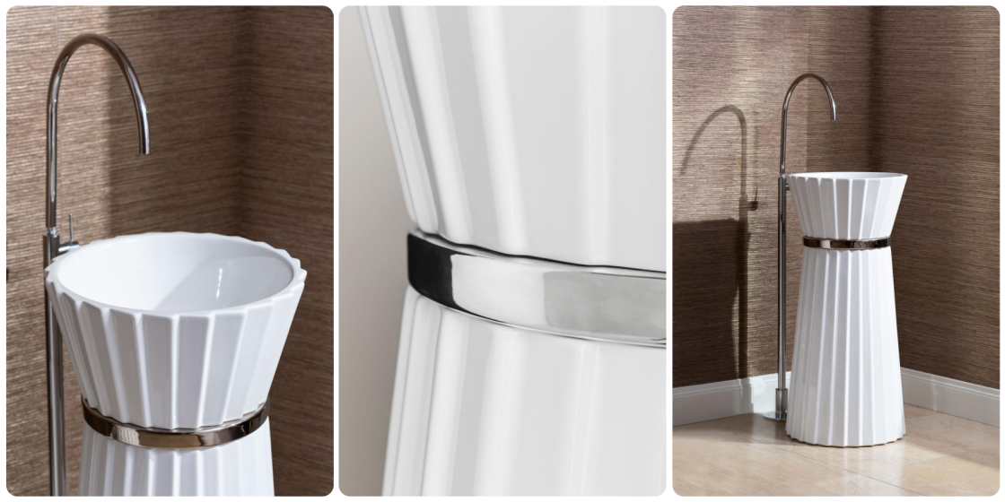 Вы когда-нибудь видели, чтобы раковина вызывала восхищение, как платье от Valentino? Коллекция Plissé — именно такой случай. Это не просто сантехника, а fashion-объект, достойный модного показа. Представьте: стройные колонны-раковины, будто застывшие в движении модели на подиуме, их складки переливаются, как шёлк на вечернем платье, а золотое кольцо на «талии» — это акцент, похожий на пояс от Dolce&Gabbana.