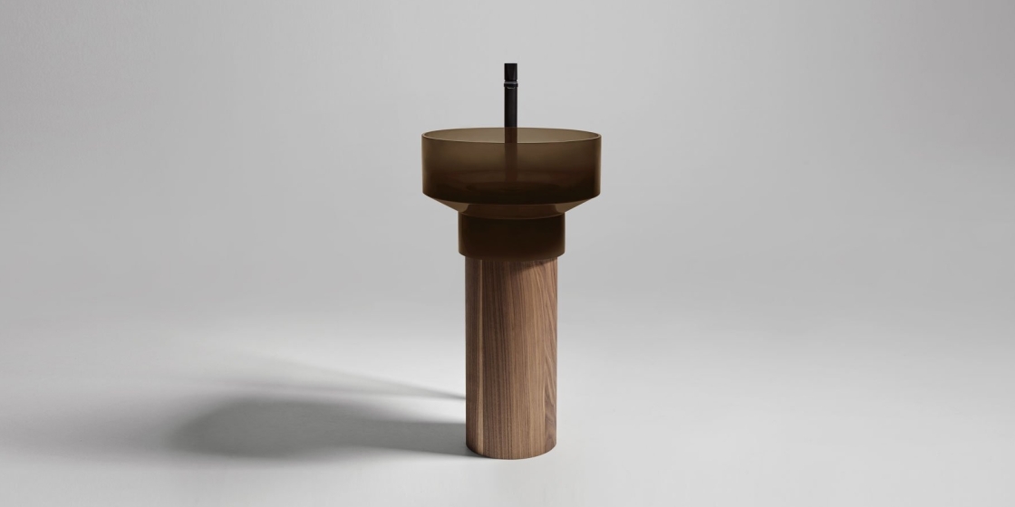Раковина Servo Cristalmood напоминает выставочный объект — монолитный, но почти невесомый. Её круглая чаша будто выточена из света, а тонкая цилиндрическая ножка придает конструкции элегантный вид.
