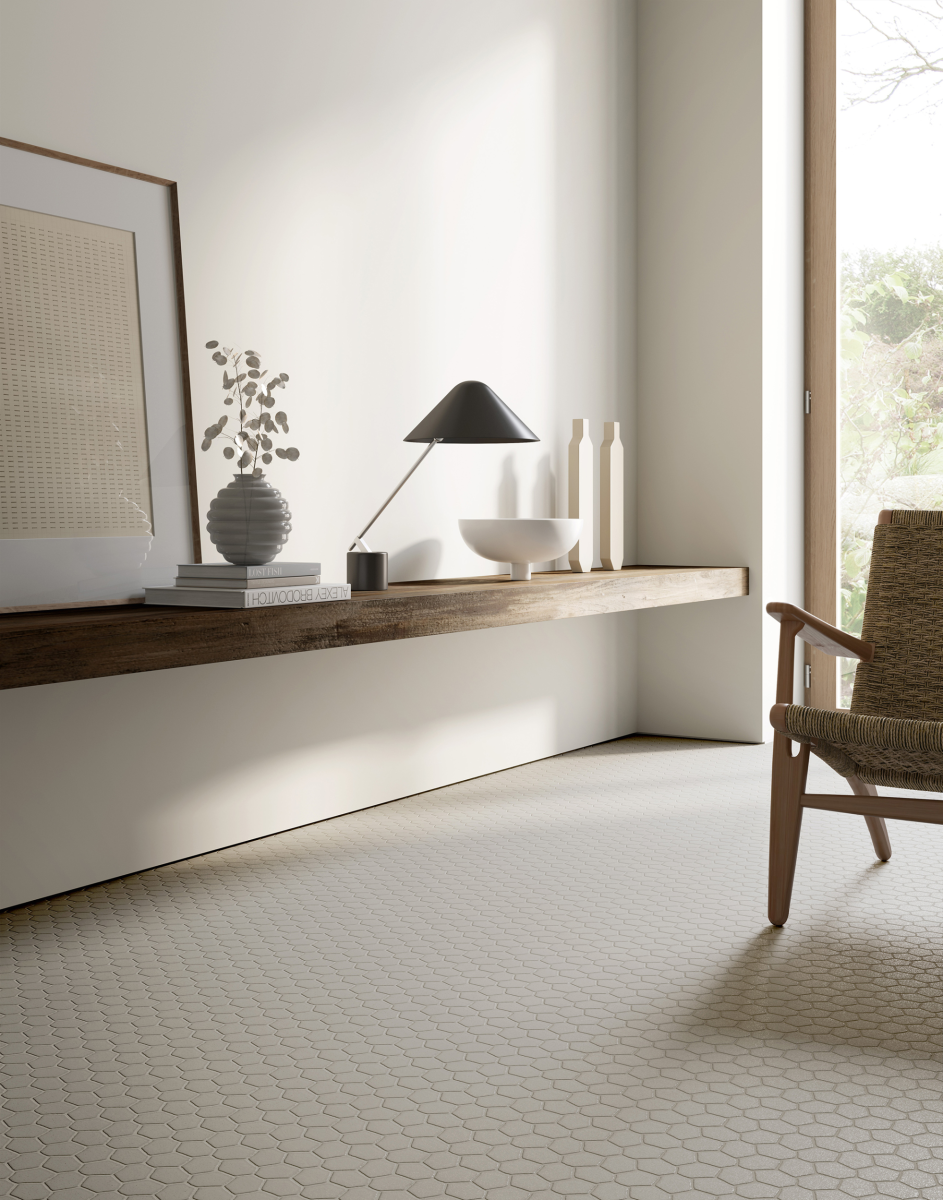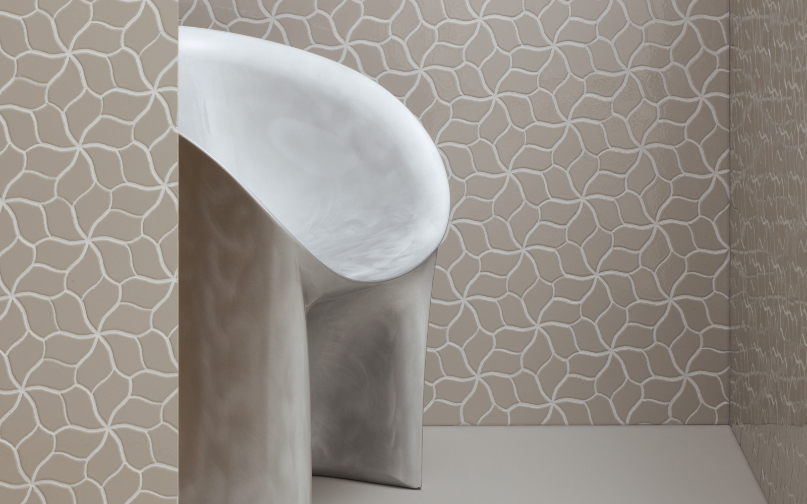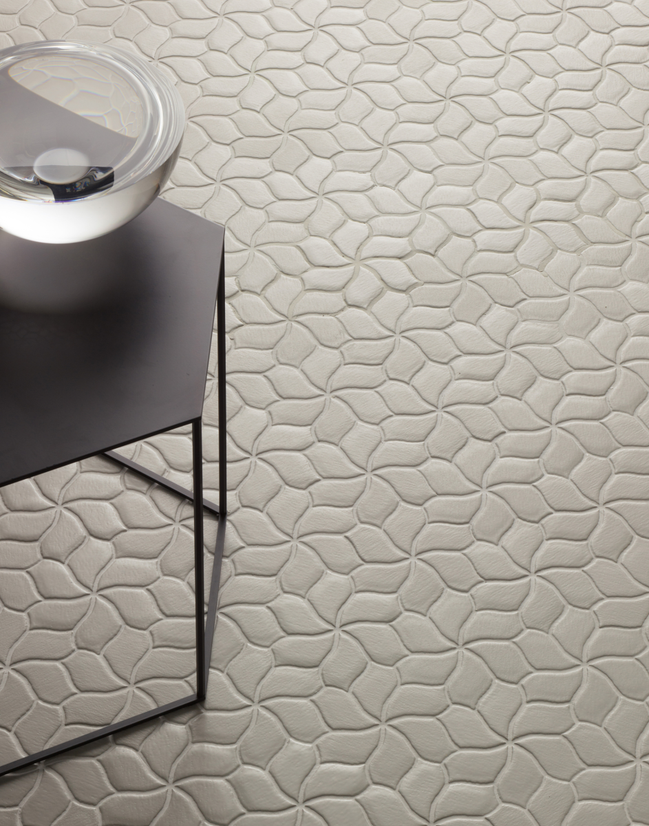 Коллекция Botanica включает два основных элемента: «Семя» размером 14x15 см и «Цветок» размером 15x17 см. Их модули продаются эксклюзивно в форматах 40,5x23,7 см для «Семени» и 41,1x23,5 см для «Цветка». Модули доступны в двух цветах — белом и сером — с суперглянцевой и матовой вощеной поверхностью, приятной на ощупь и подходящей для укладки как на пол, так и на стены. Такая поверхность обеспечивает визуальную непрерывность поверхностей, позволяя мозаике становиться более или менее выразительной в зависимости от цвета затирки. Благодаря этому достигается гармоничный баланс между элегантностью и функциональностью, важный для интерьерных решений с использованием керамогранита высокого качества.