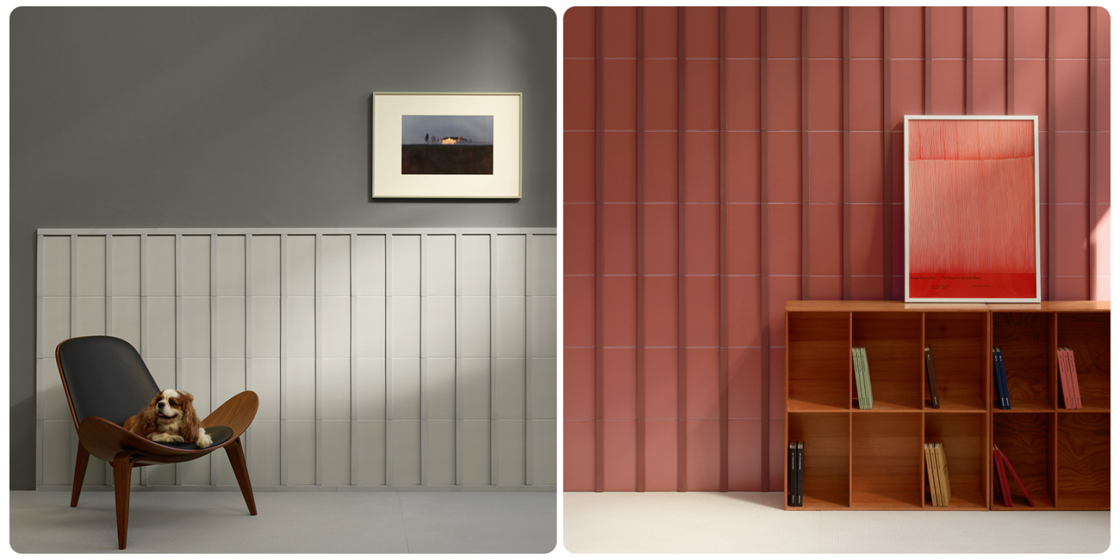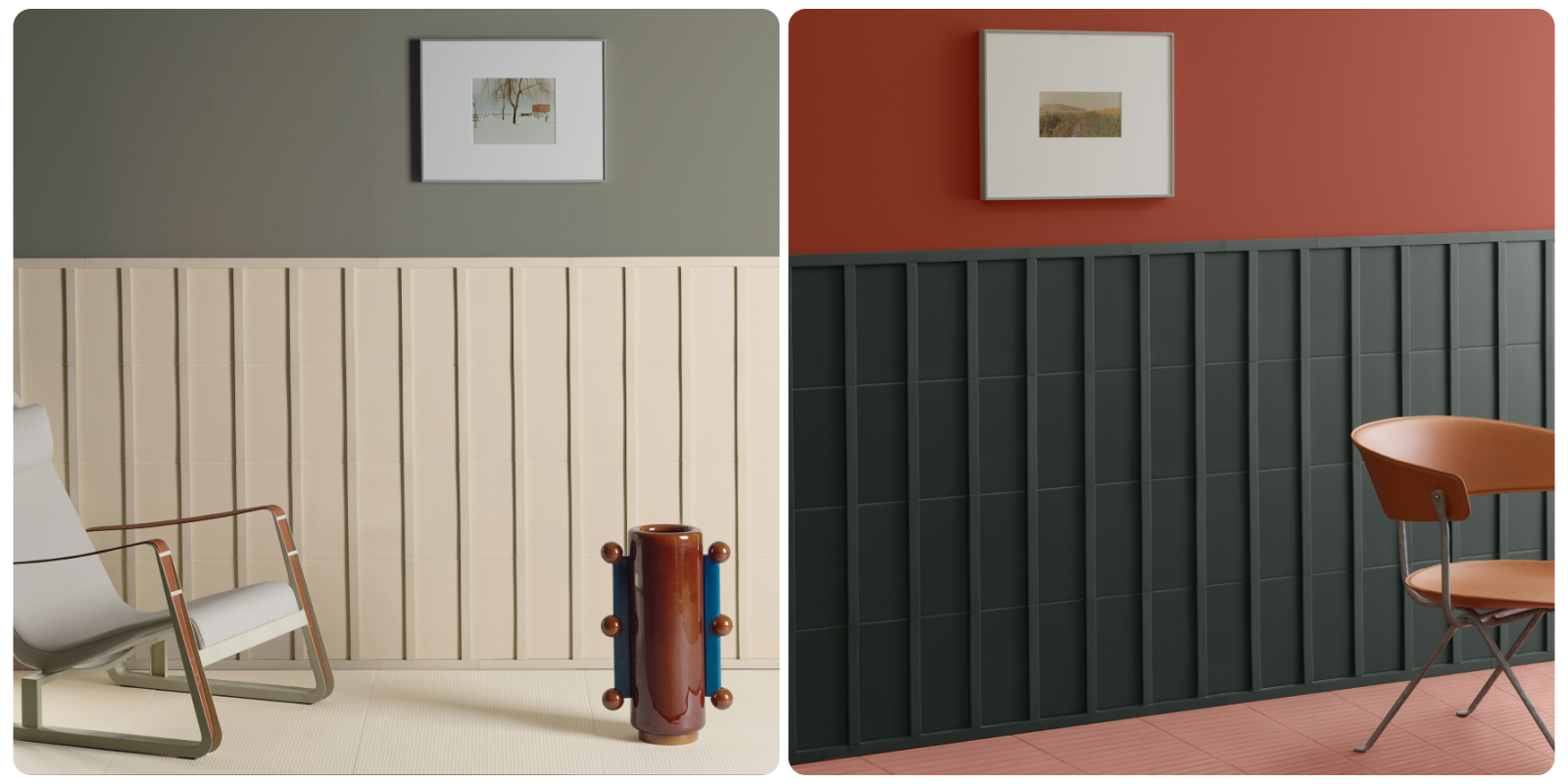 Коллекция Motivo, разработанная Ronan Bouroullec, вдохновлена традиционными деревянными стеновыми панелями, характерными для буазери, которые были переосмыслены в современном ключе с использованием керамических материалов. Это модульная система, которая преображает пространство через игру светотени на рельефе элементов, вдохновленная детскими воспоминаниями о домах бабушек и дедушек и интерьерами старинных шотландских замков.
