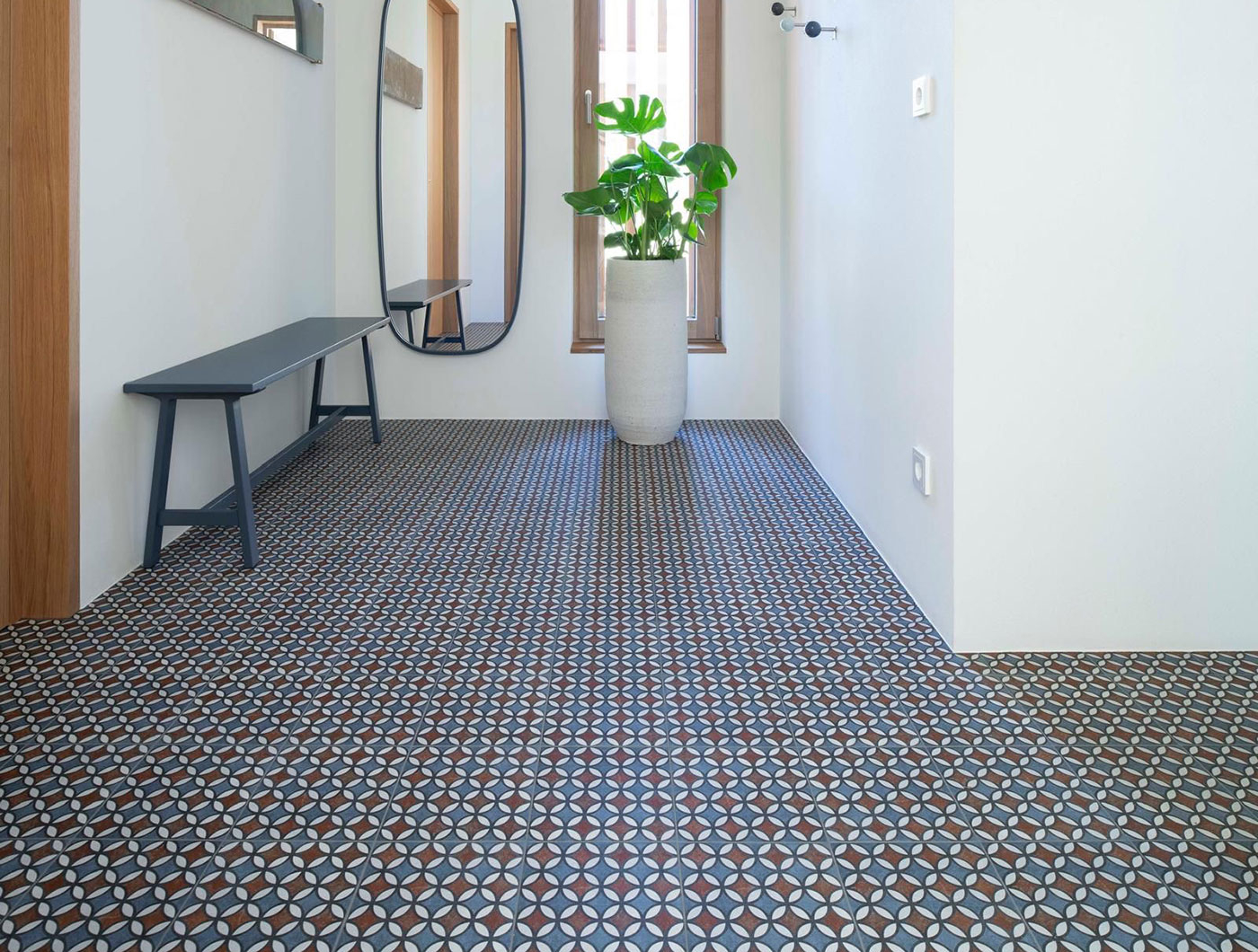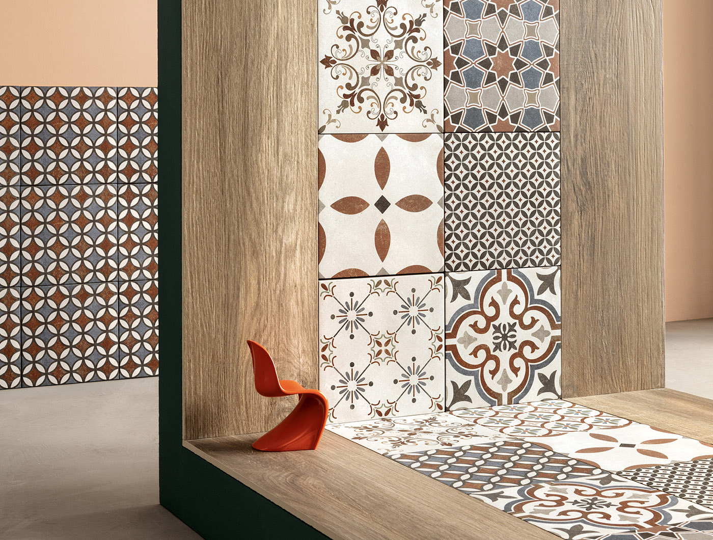 Цветная цементная плитка Romanza представлена в восьми декоративных вариантах, каждый из которых может использоваться как самостоятельный элемент или в комбинации с другими, включая имитацию дерева. Такая гибкость открывает широкие возможности для создания авторских композиций на полу и стенах. Керамогранит коллекции отличается высокой прочностью, низким водопоглощением и устойчивостью к износу — идеальное решение для жилых и коммерческих интерьеров. Благодаря современным технологиям производства, плитка обладает глубокой, выразительной текстурой, имитирующей природные материалы. Формат 20,5×20,5 см подчёркивает ретро-шарм, при этом сохраняя современное звучание, что делает Romanza универсальной для ванных, кухонь, гостиных и бутиковых пространств.