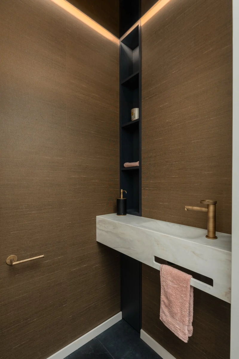 Бумагодержатель Gessi Anello настенного типа в элегантном оттенке Warm Bronze Brushed PVD добавляет в облик ванной комнаты изысканность и уют. Его тщательно продуманный дизайн гармонично сочетается с современными и классическими интерьерами, создавая атмосферу комфорта. Бронза одновременно красивa и устойчива к коррозии, что гарантирует долговечность данного изделия. Установка на стену позволяет эффективно использовать пространство, обеспечивая при этом легкий доступ к туалетной бумаге. Эта модель также отличается удобством и продуманной эргономикой, что делает ее практичным вариантом для ежедневного применения. Объединяя стиль и функциональность, Gessi Anello становится отличным выбором для тех, кто ценит высокое качество и эстетическое оформление в каждой детали дизайна интерьера.