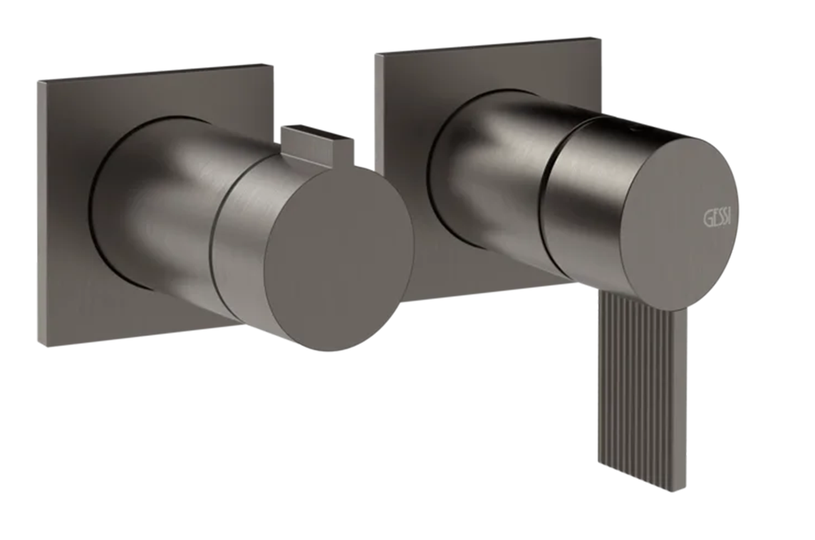 Смеситель для душа Gessi Inverso в отделке Black Metal Brushed PVD отличается графичной строгостью и глубоким тёмным оттенком с матовой текстурой. Настенная конструкция с двумя выходами делает модель функциональным решением для душевых зон.