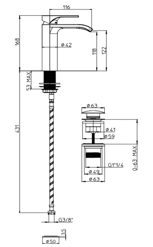 Узнать ценуСмеситель для раковины Bossini Apice 2-M представляет собой однорычажную модель, отличающуюся лаконичным дизайном и продуманной эргономикой. Она оснащена прямоугольным аэратором размером 28×7 мм, который формирует насыщенный и равномерный поток воды без разбрызгивания. В комплектацию входит донный клапан диаметром 11⁄4 дюйма и гибкая подводка из нержавеющей стали с соединением 3/8" F, что обеспечивает простой и надежный монтаж.