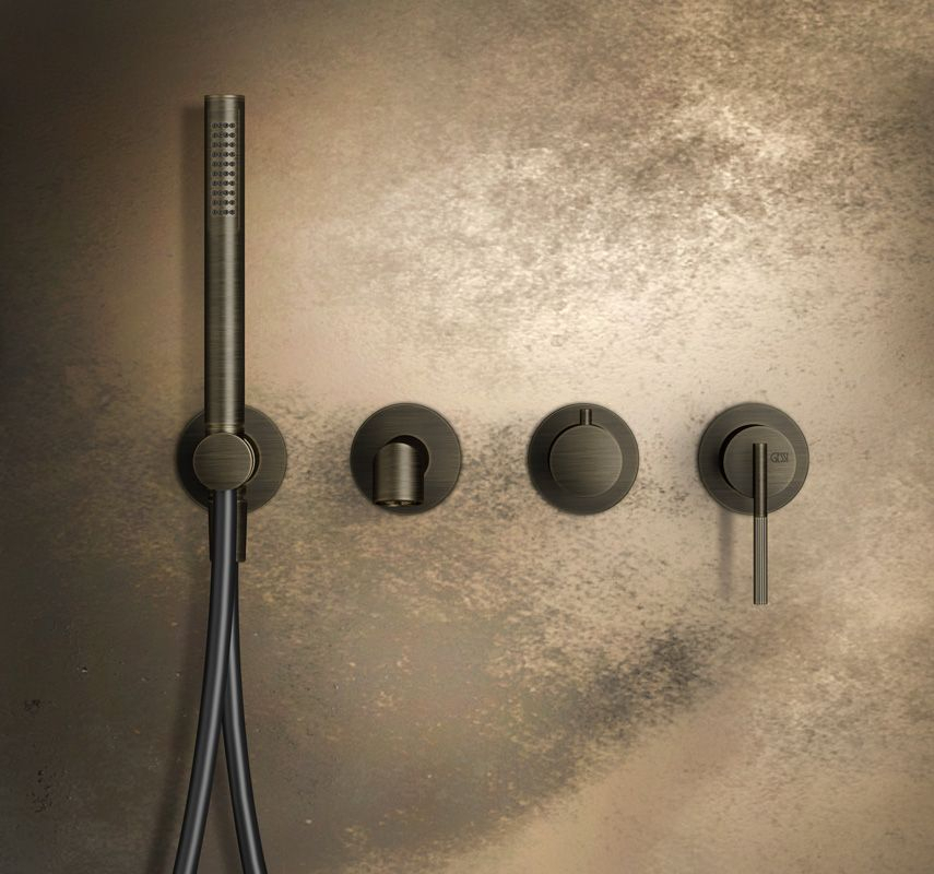 Функция переключения между ванной и душем интегрирована в корпус смесителя, что упрощает эксплуатацию и сохраняет цельность дизайна. Шлифованная латунь придаёт изделию глубину и выразительность, подчеркивая фирменную эстетику коллекции.