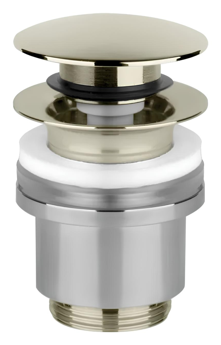 Автоматический донный клапан Gessi с крышкой диаметром Ø63 мм предназначен для раковин с переливом. Он открывается и закрывается нажатием, исключая необходимость ручного вмешательства или использования дополнительных аксессуаров.