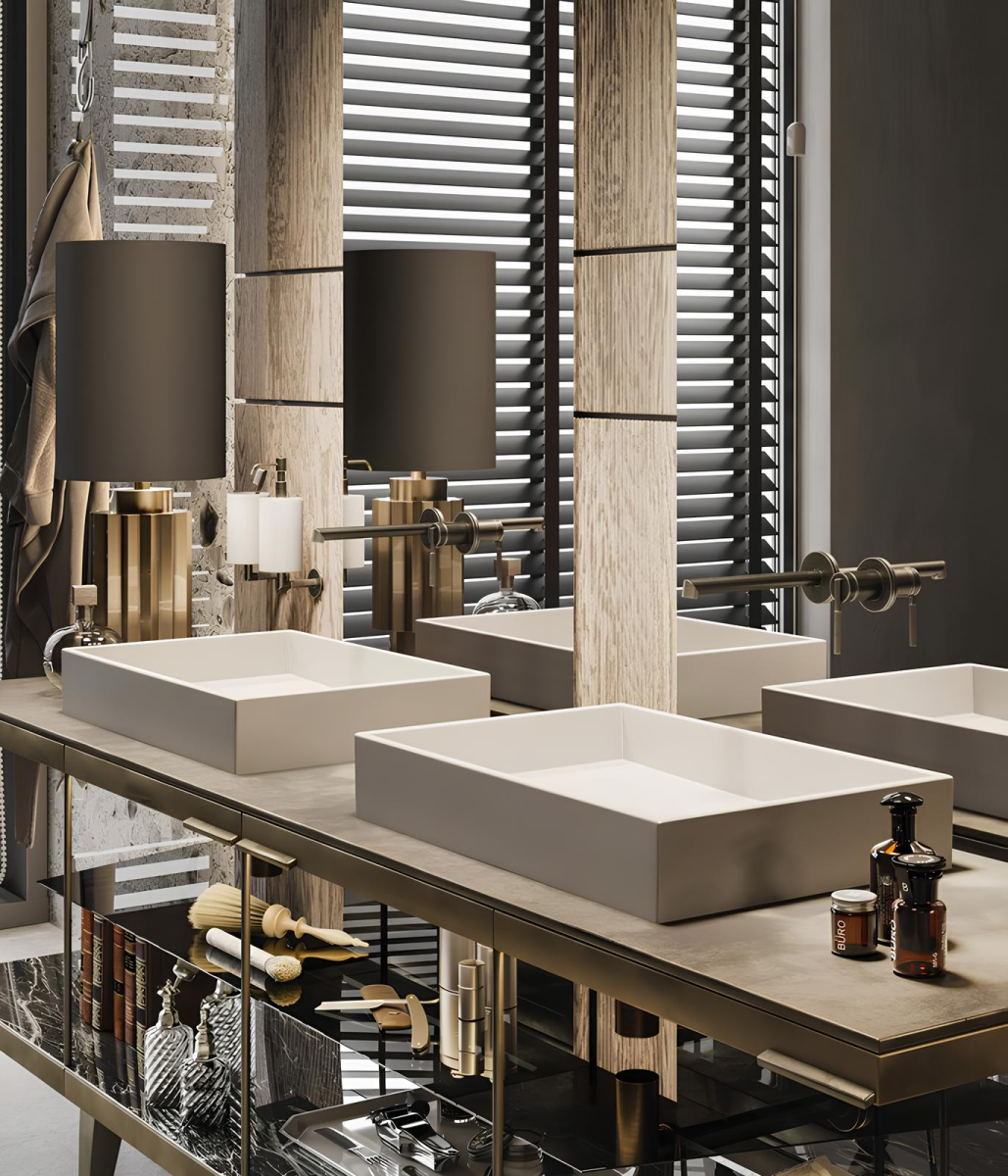 Тёплый оттенок Warm Bronze Brushed PVD усиливает тактильность материала, подчёркивая контуры и создавая насыщенную игру света на поверхности. Матовая структура отделки придаёт изделию глубину и сдержанную выразительность.