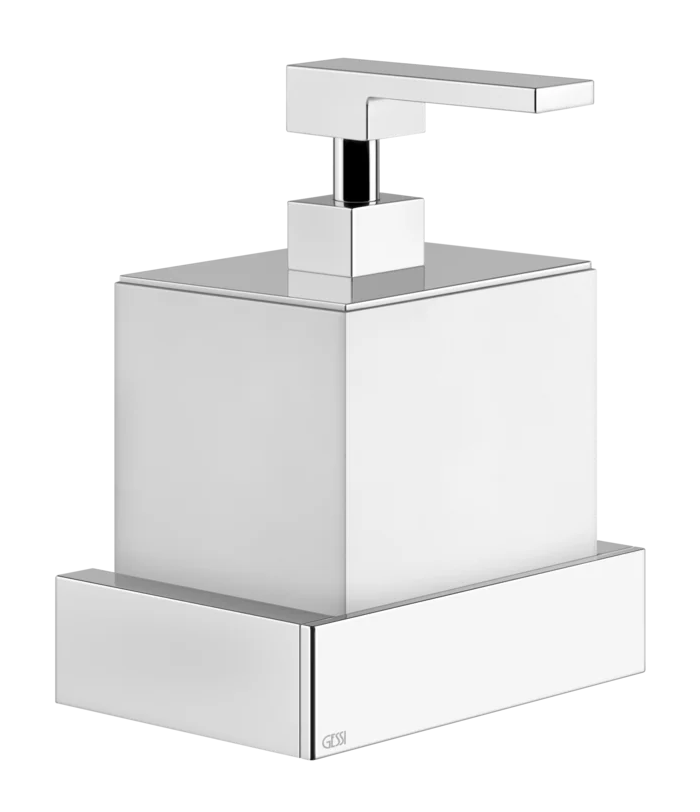 Настенный дозатор для жидкого мыла Gessi Rettangolo отличается строгими прямоугольными линиями, подчёркивающими минималистичную эстетику всей коллекции. Компактный и функциональный, он органично вписывается в современные ванные комнаты с геометрически выверенным дизайном.
