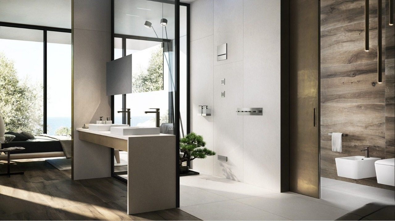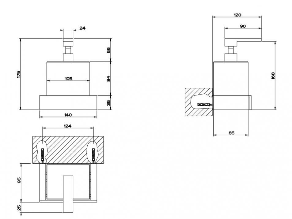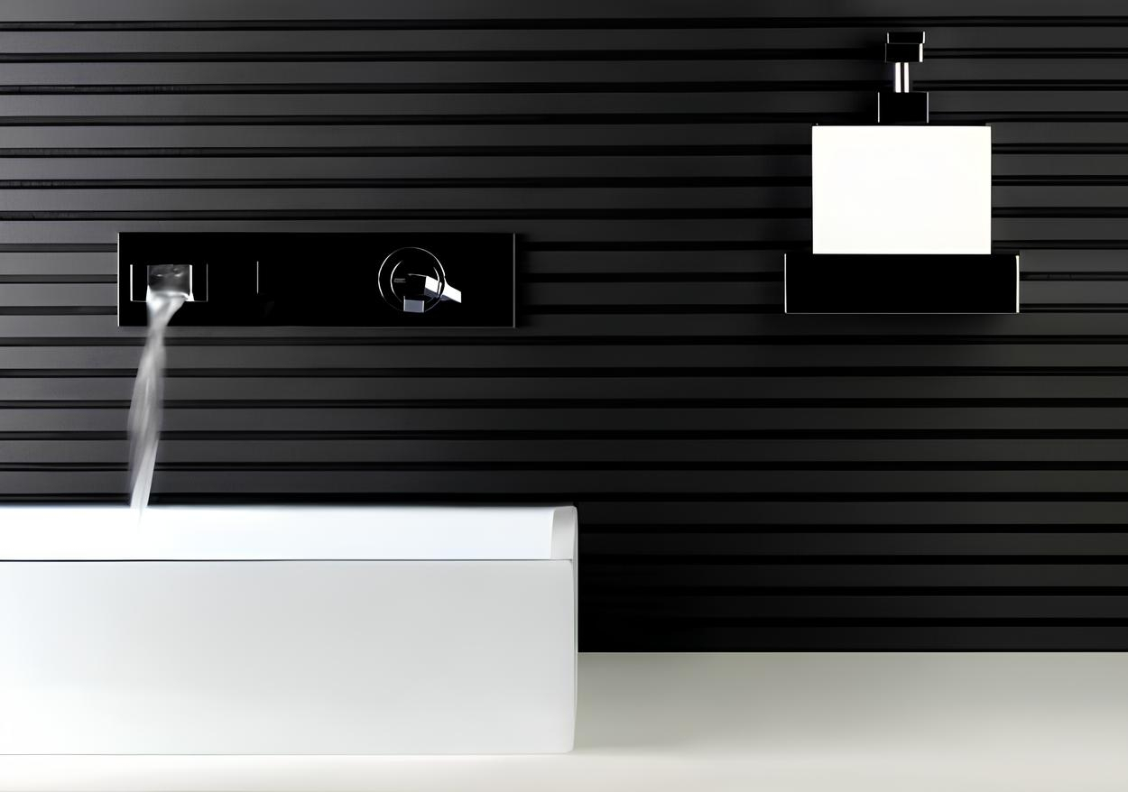 Дозатор Gessi Rettangolo устанавливается на стену, позволяя рационально использовать пространство рядом с раковиной.