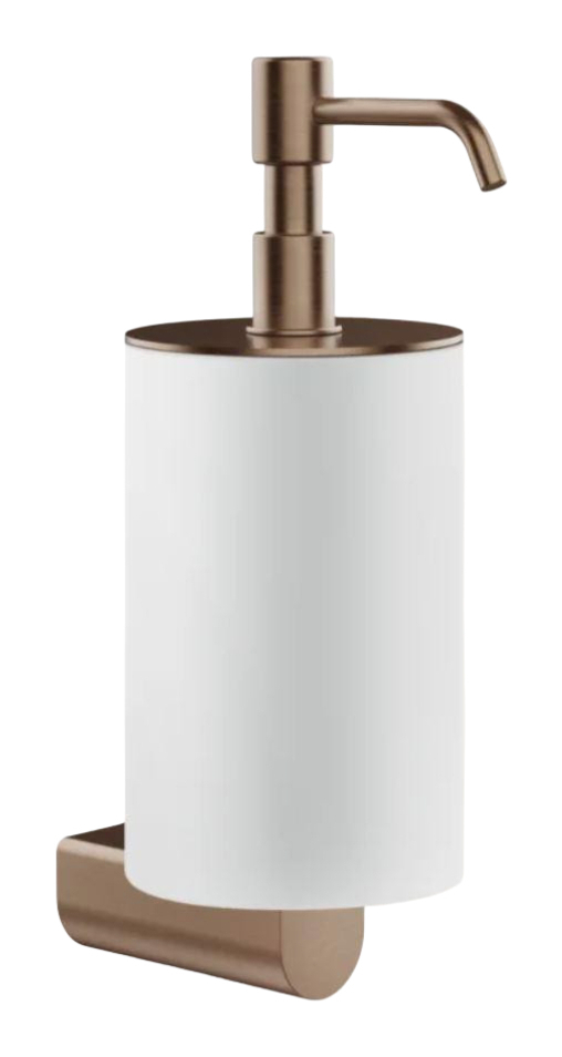 Настенный дозатор для жидкого мыла Gessi Rilievo выполнен в цвете Copper Brushed PVD и отличается лаконичным силуэтом с выразительной геометрией. Высота конструкции — 222 мм, что обеспечивает удобство при установке рядом с умывальником или раковиной.