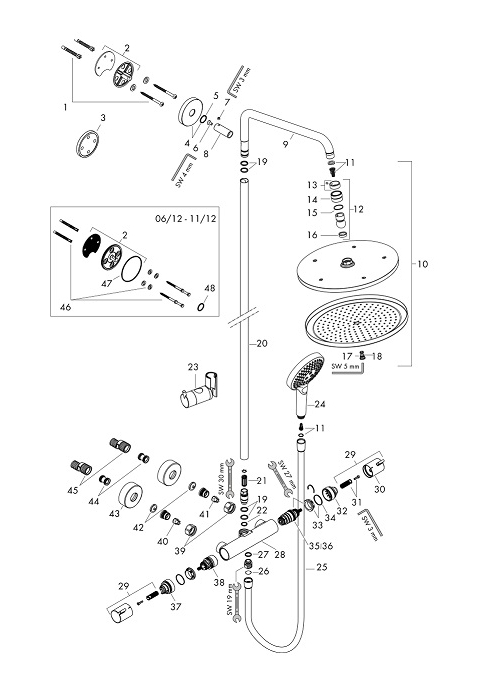 Максимальный расход воды составляет 14,5 л/мин при давлении 3 бара, так же система подходит для проточных водонагревателей. Настенный монтаж и соединительная резьба G 1⁄2 делают установку простой и удобной.