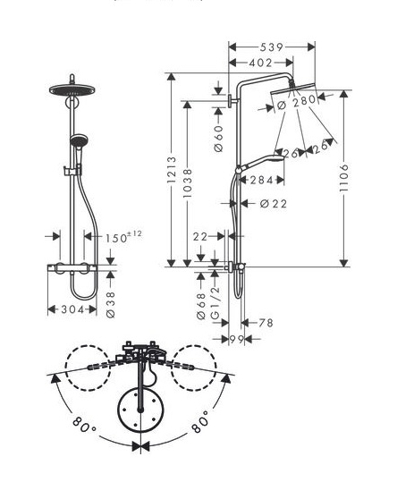 Душевая система Hansgrohe Croma Select 280 Air Showerpipe включает в себя - верхний душ Croma 280 с держателем длиной 400 мм. Тип струи верхнего душа - RainAir, который обеспечивает мягкое и приятное ощущение. Ручная лейка с тремя режимами: RainAir, Rain и Whirl, позволяя выбрать идеальный вариант для вашего настроения. Стойка с держателем для ручного душа, регулируемым по высоте, и поворотным душевым кронштейном позволяет легко настраивать высоту и угол наклона. Шланг ручной лейки длиной 1,6 м обеспечивает свободу движений.