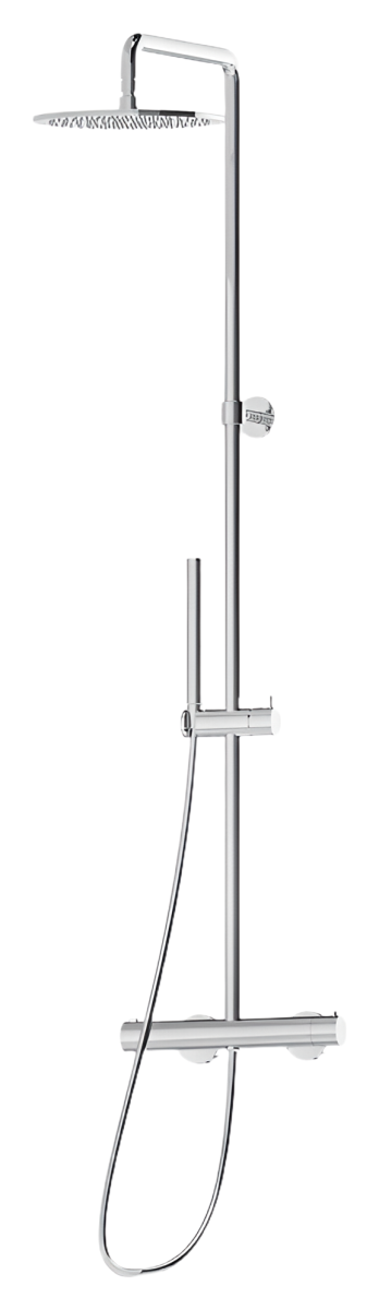 Душевая система Newform сочетает в себе точную инженерию и элегантную простоту: термостат обеспечивает стабильную температуру воды, мгновенно реагируя на перепады давления и защищая от ожогов или неожиданного похолодания. Хромовое покрытие придает комплекту зеркальный блеск, подчеркивая лаконичные линии и делая систему универсальной для любых интерьерных решений — от строгого минимализма до более классических обликов ванной комнаты.