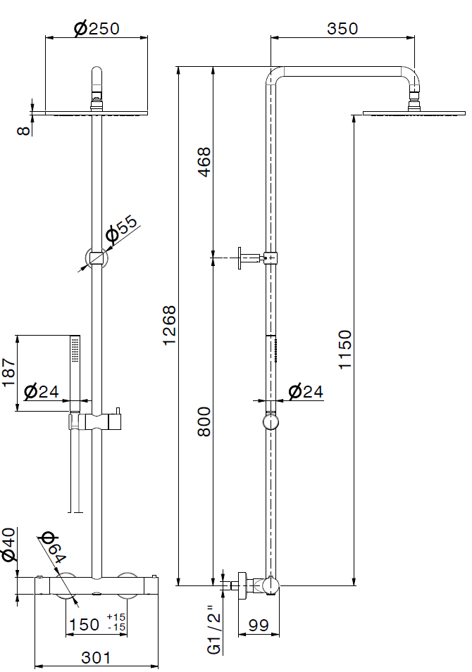 Интуитивно понятный переключатель позволяет легко переключаться между верхним душем и ручным, а стойка с верхним душем -250 мм создает широкое, равномерное покрытие, напоминающее мягкий летний ливень. Ручной душ дополняет душевую систему Newform, обеспечивая удобство при гигиенических процедурах и уходе за ванной, а также облегчая мытье детей и домашних животных.