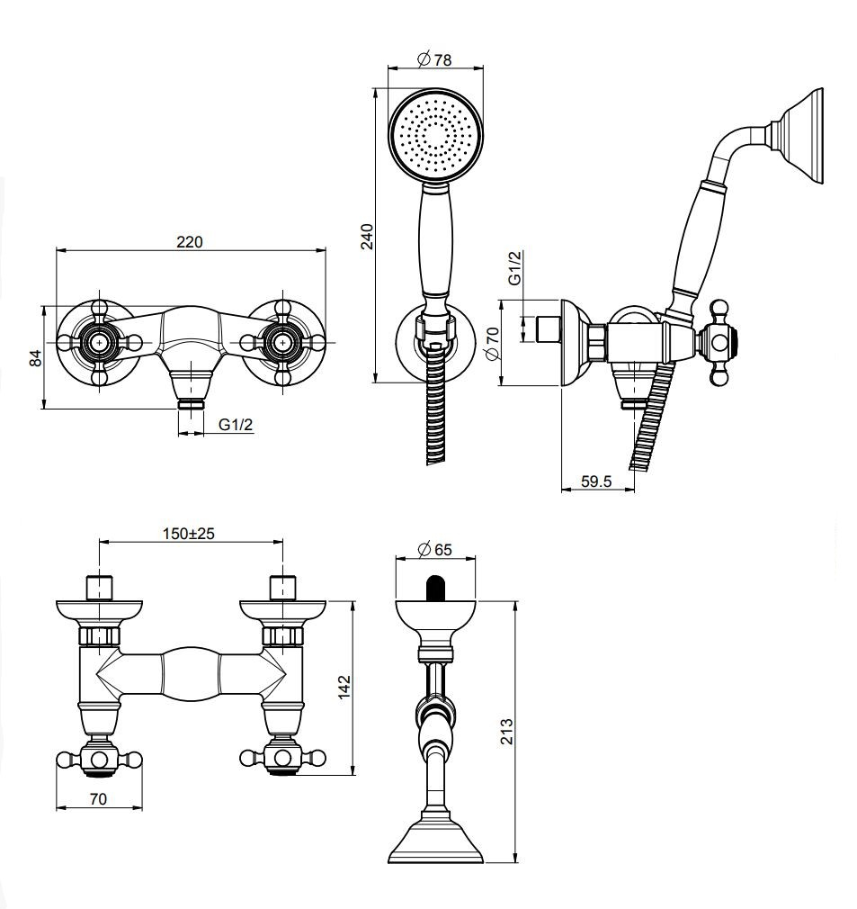 Конструкция набора продумана до мелочей: удобная форма ручного душа обеспечивает комфортное использование, а латунный шланг отличается долговечностью и надежностью. Смеситель выполнен в классическом стиле, гармонично дополняющем коллекцию Elizabeth/Epoque.