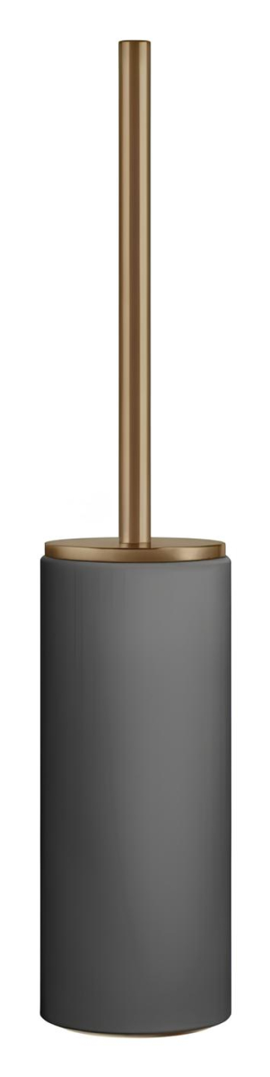 Напольный ёршик Gessi высотой 423 мм выполнен в контрастной отделке Black/Warm Bronze Brushed PVD. Узкий цилиндрический корпус в чёрном цвете сочетается с крышкой и ручкой тёплого бронзового оттенка с направленной шлифовкой. Сдержанный дизайн позволяет аксессуару органично вписаться в интерьер ванных комнат с элементами в тёплых металлических тонах.