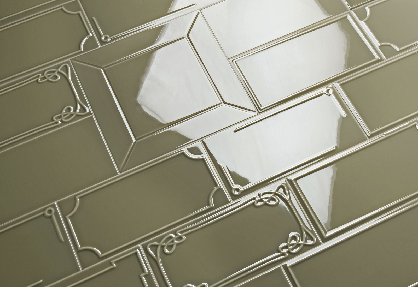 Глянцевая поверхность обеспечивает насыщенный блеск и подчёркнутую яркость цвета, достигаемые за счёт традиционного двойного обжига и обильного нанесения глазури. Такой декоративный приём придаёт поверхности живость и изысканную глубину, идеально вписывая изделие в традиции арт-деко и классического оформления интерьеров. Формат Vector Frame C с фигурной рамкой привнесёт акцент и утонченную детализацию, способствуя созданию стильной и выразительной атмосферы.