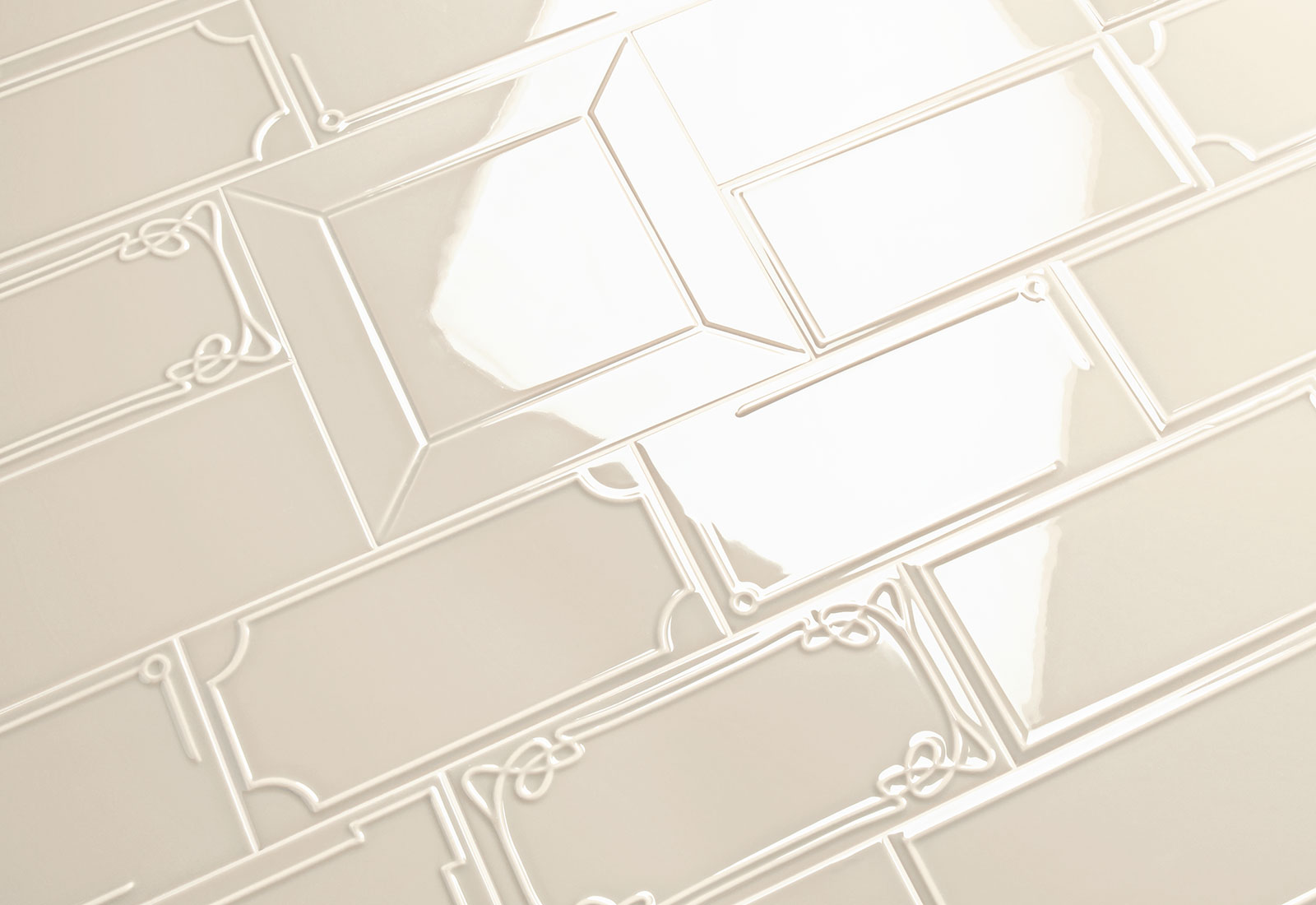Глянцевая поверхность обеспечивает насыщенный блеск и подчёркнутую яркость цвета, достигаемые за счёт традиционного двойного обжига и обильного нанесения глазури. Такой декоративный приём придаёт поверхности живость и изысканную глубину, идеально вписывая изделие в традиции арт-деко и классического оформления интерьеров. Формат Vector Frame C с фигурной рамкой привнесёт акцент и утонченную детализацию, способствуя созданию стильной и выразительной атмосферы.