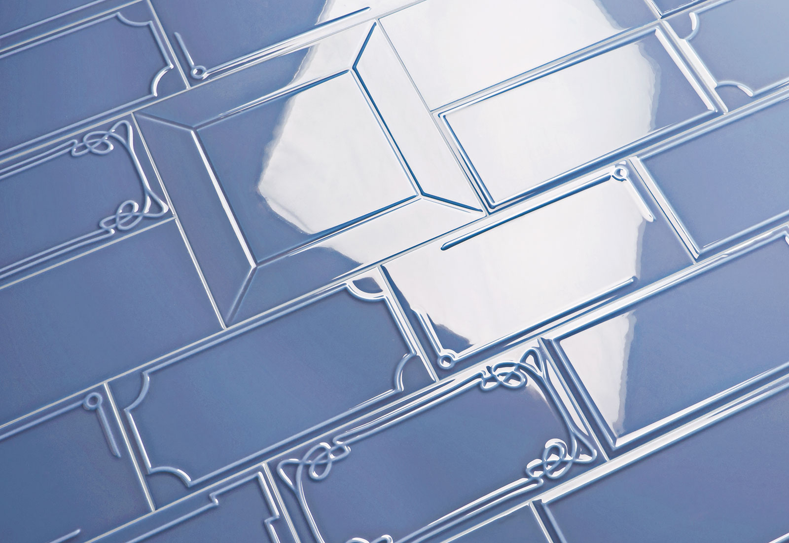 Глянцевая поверхность обеспечивает насыщенный блеск и подчёркнутую яркость цвета, достигаемые за счёт традиционного двойного обжига и обильного нанесения глазури. Такой декоративный приём придаёт поверхности живость и изысканную глубину, идеально вписывая изделие в традиции арт-деко и классического оформления интерьеров. Формат Vector Frame C с фигурной рамкой привнесёт акцент и утонченную детализацию, способствуя созданию стильной и выразительной атмосферы.