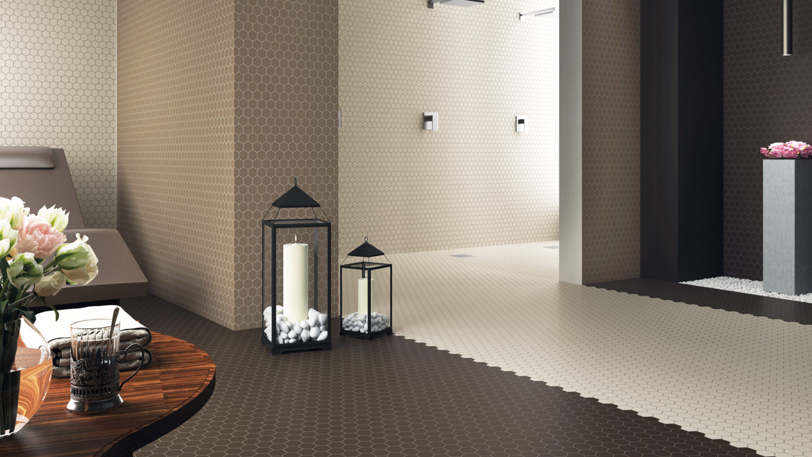 Этот высококачественный керамогранит, окрашенный в массе, обладает превосходными техническими характеристиками. Каждый отдельный элемент размером 5X5.7 см и шестиугольной формы прессован и установлен на сетку, что обеспечивает легкость укладки и точность отделки. Плитка обладает противоскользящим покрытием R10 и матовой текстурой, приятной на ощупь. Etruria Керамогранит Xxs Esagono 5X5.7 Su Rete A Tre Colori Bianco / Tortora / Tabacco идеально подходит для пола и стен в ванных комнатах, кухнях, коридорах и коммерческих помещениях, создавая легкую и свежую атмосферу.