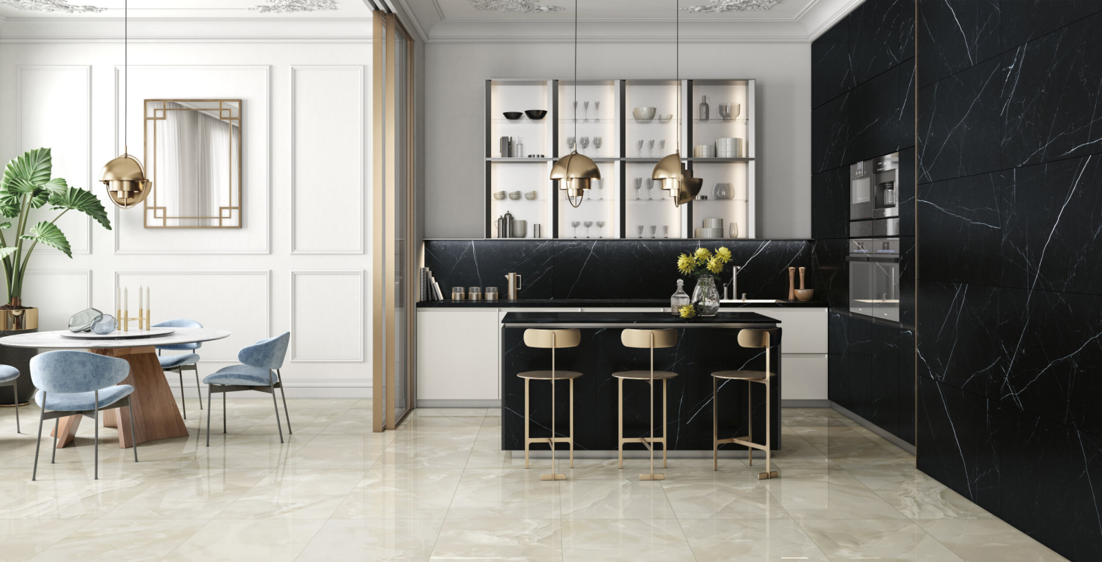FMG Select Black Marquinia представляет собой изысканное решение для создания строгих и минималистичных интерьеров, вдохновленных благородством натурального черного мрамора. Этот материал искусно имитирует текстуру и глубину камня, воссоздавая его утонченную эстетику. Отличительной чертой являются редкие, но выразительные светлые прожилки, которые элегантно контрастируют с насыщенным черным фоном. Эти прожилки придают поверхности уникальный характер и добавляют визуальный интерес, предотвращая монотонность и оживляя пространство.