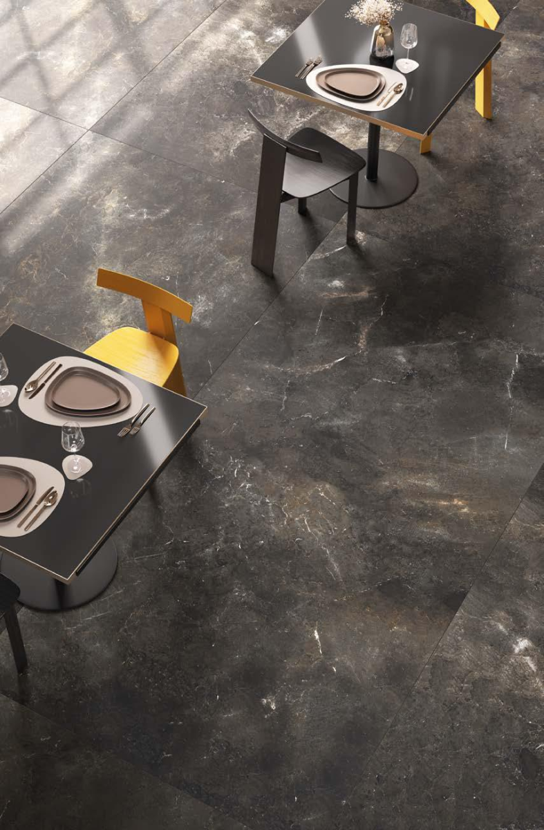 Узнать ценуКерамогранит FMG Maxfine Art Stone Mystic black naturale – современное прочтение природной красоты камня, где каждая плита раскрывает неповторимый рисунок с характерными прожилками и пятнами. Насыщенный черно-коричневый оттенок привносит ощущение спокойствия и стабильности, делая этот материал идеальным выбором для обновления современной архитектуры и дизайна интерьера. Органично сочетается с натуральными элементами, такими как дерево, металл и стекло, позволяет создавать гармоничные и сбалансированные пространства. Яркие акценты в виде аксессуаров и текстиля подчеркнут глубину и многогранность серой плитки на полу и на стенах, добавляя интерьеру индивидуальность.