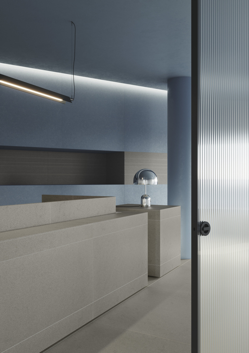 Поверхность керамогранита раскрывается благодаря отделке Top Lapped: шёлковая матовость подчёркивает воздушность тона, а едва заметные минеральные включения создают эффект лёгкой облачности. Этот освежающий оттенок станет идеальным решением для спален, ванных комнат и пространств релаксации, где важны ощущение свежести и визуальное расширение пространства. Керамогранит FMG TerraPura в цвете Celeste привносит в интерьер атмосферу безмятежности и лёгкости, оставаясь при этом удивительно выразительным и стильным акцентом.
