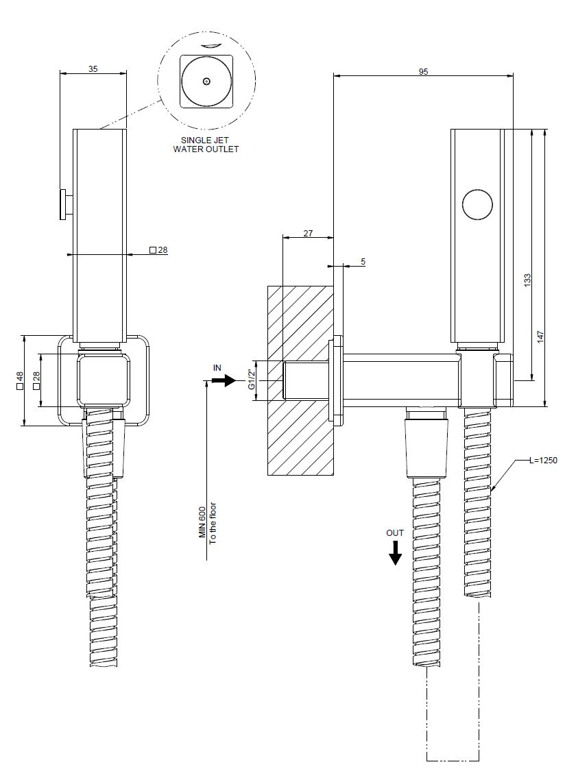 Гидроёршик Gessi Rilievo в цвете Warm Bronze Brushed PVD сочетает утилитарную функцию с эстетикой коллекции. Его ширина составляет всего 46 мм, благодаря чему он остаётся компактным и аккуратным элементом в санузле, не привлекая лишнего внимания.