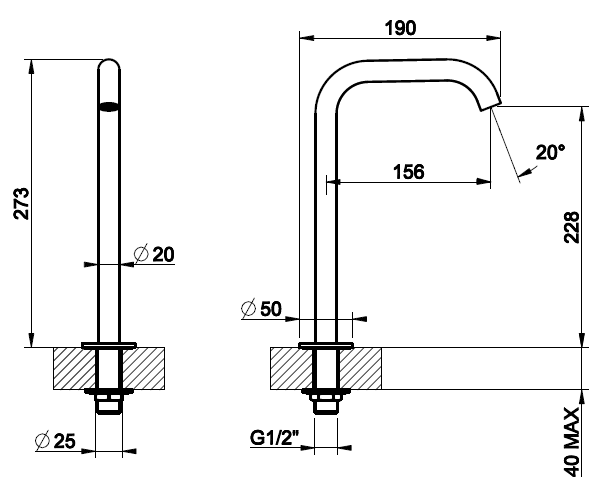 Gessi316 излив для раковины, отдельностоящий, высота 273 мм, цвет Black Metal Brushed PVD.