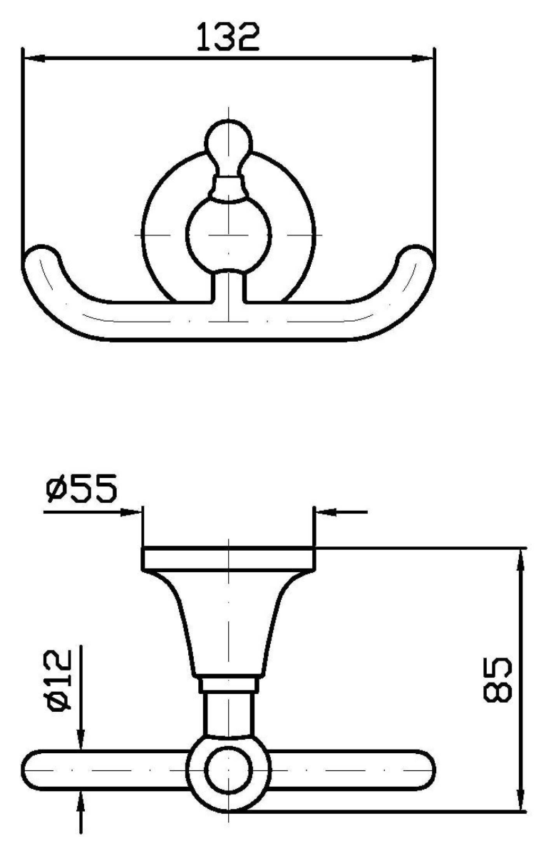 Двухсекционная конструкция сочетает функциональность с визуальной легкостью, предлагая практичное решение для размещения полотенец, халатов или аксессуаров. При создании крючка использованы материалы нового поколения, что позволило сохранить аутентичность дизайна при значительном улучшении эксплуатационных характеристик. Монтаж настенного типа обеспечивает простоту установки и надежность крепления.