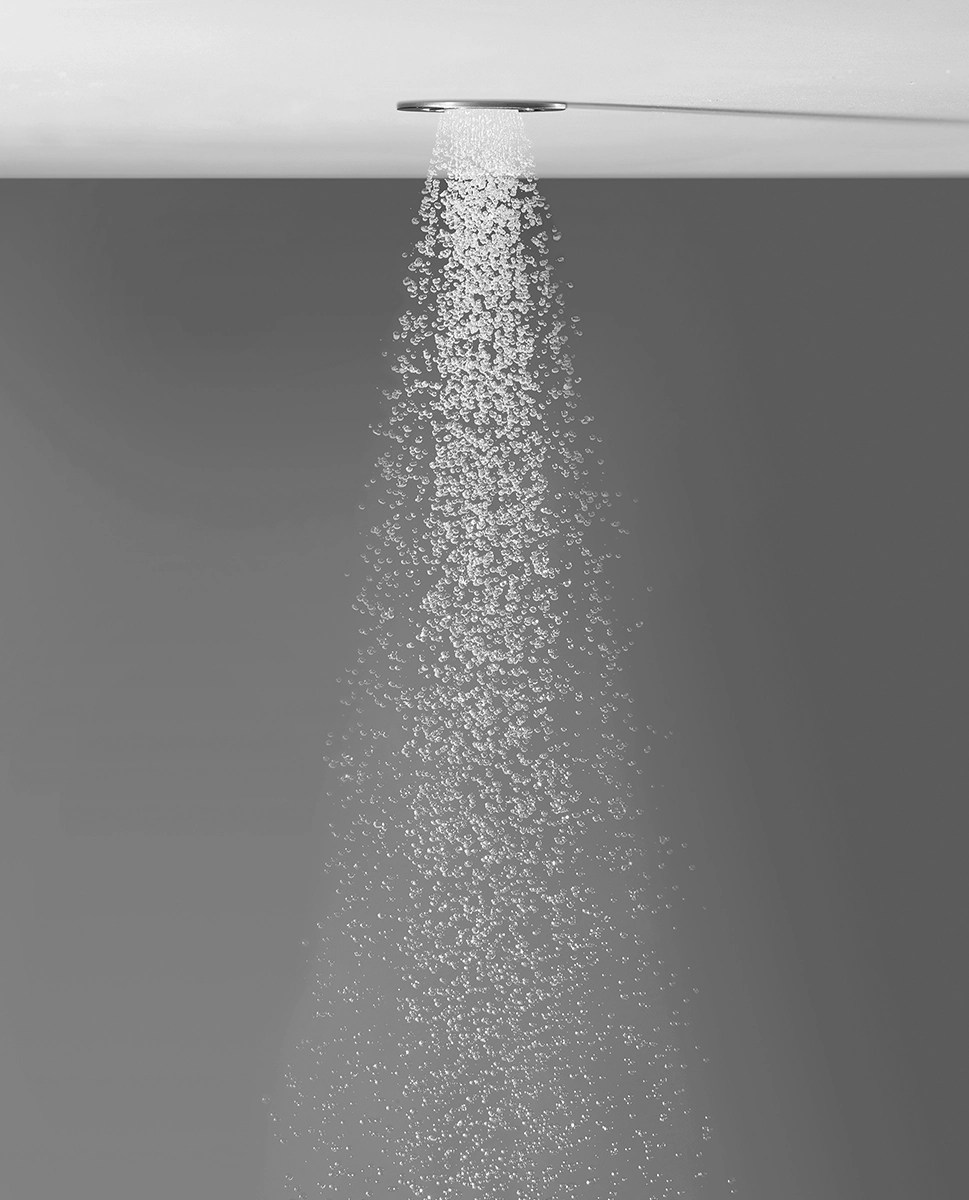 Брашированный никель создаёт спокойную матовую поверхность с деликатным металлическим оттенком. Такая отделка хорошо сочетается со светлой плиткой, камнем, микробетоном и нейтральными интерьерными решениями. Компактный формат микродуша не перегружает пространство, при этом добавляет функциональность и подчёркивает архитектурный характер душевой зоны. Поток воды ощущается ровным и комфортным, без резких перепадов.