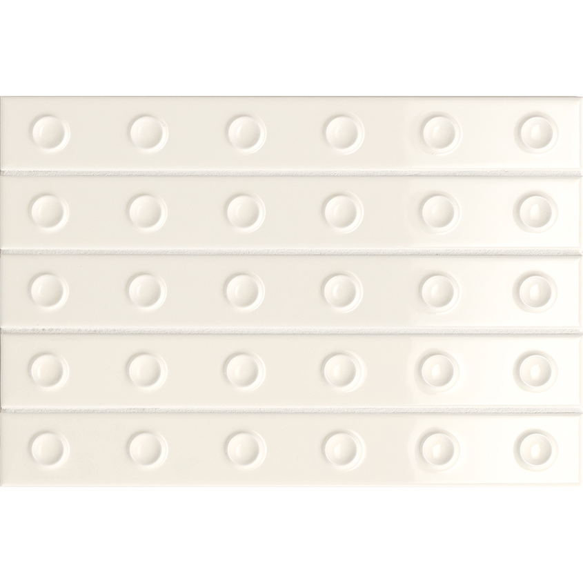 Размеры сетки из пяти элементов составляют 21×31.5 см, что позволяет легко оформлять стены больших площадей, делая интерьер стильным и выразительным. Трехмерный узор с крупными утопленными точками (Down) создает необычные светотеневые эффекты, которые меняются в зависимости от направления освещения и оживляют пространство. Поверхность изделия покрыта глянцевой глазурью, достигающейся за счет традиционной технологии двойного обжига, которая придает изделию прочность и изысканность. Такое сочетание делает Punto Glossy Down Blanc идеальным выбором для тех, кто хочет добавить интерьеру глубину и текстуру, создавая визуально динамичные решения для стен.