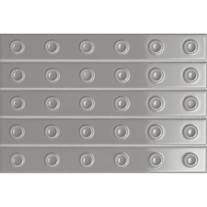 Размеры сетки из пяти элементов составляют 21×31.5 см, что позволяет легко оформлять стены больших площадей, делая интерьер стильным и выразительным. Трехмерный узор с крупными утопленными точками (Down) создает необычные светотеневые эффекты, которые меняются в зависимости от направления освещения и оживляют пространство. Поверхность изделия покрыта глянцевой глазурью, достигающейся за счет традиционной технологии двойного обжига, которая придает изделию прочность и изысканность. Такое сочетание делает Punto Glossy Down Gris идеальным выбором для тех, кто хочет добавить интерьеру глубину и текстуру, создавая визуально динамичные решения для стен.