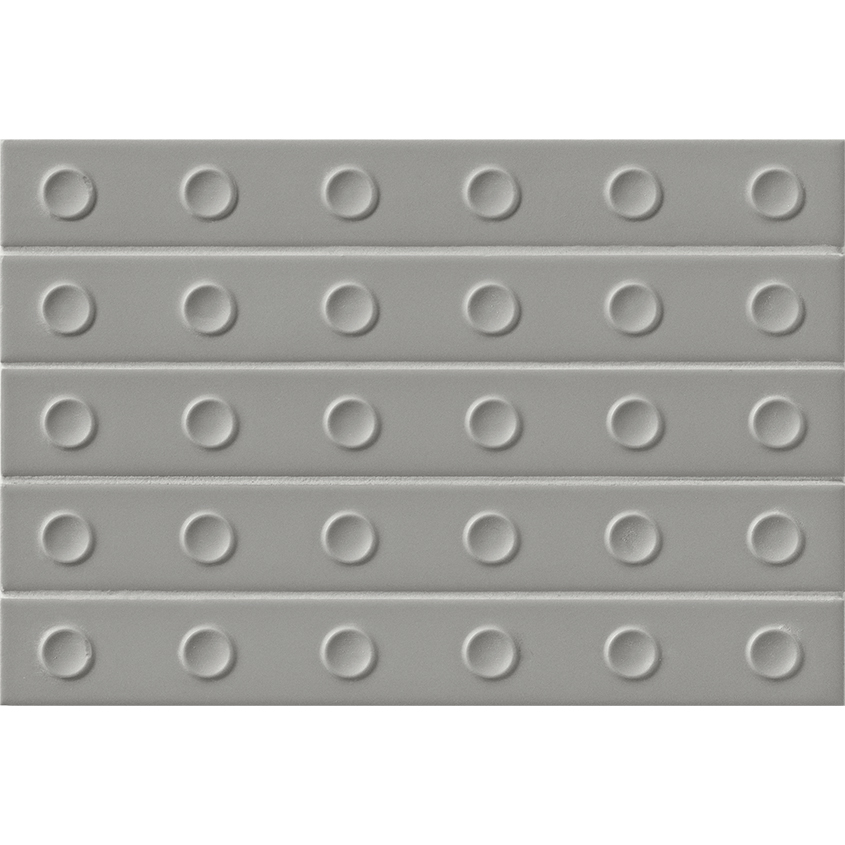 Размеры сетки из пяти элементов составляют 21×31.5 см, что позволяет легко оформлять стены больших площадей, делая интерьер стильным и выразительным. Трехмерный узор с крупными утопленными точками (Down) создает необычные светотеневые эффекты, которые меняются в зависимости от направления освещения и оживляют пространство. Поверхность изделия матовая, за счет традиционной технологии двойного обжига, придает изделию прочность и изысканность. Такое сочетание делает Punto Matt Down Grey идеальным выбором для тех, кто хочет добавить интерьеру глубину и текстуру, создавая визуально динамичные решения для стен.