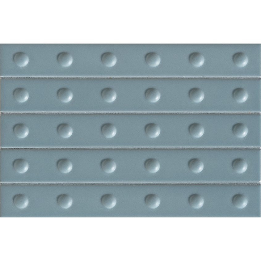 Размеры сетки из пяти элементов составляют 21×31.5 см, что позволяет легко оформлять стены больших площадей, делая интерьер стильным и выразительным. Трехмерный узор с крупными приподнятыми точками (Up) создает необычные светотеневые эффекты, которые меняются в зависимости от направления освещения и оживляют пространство. Поверхность изделия матовая, за счет традиционной технологии двойного обжига, придает изделию прочность и изысканность. Такое сочетание делает Punto Matt Up Blue идеальным выбором для тех, кто хочет добавить интерьеру глубину и текстуру, создавая визуально динамичные решения для стен.