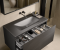 Тумба выполнена в эффектной отделке меламин "Black Wood" (Черное Дерево), создающей драматичный и стильный фон. Столешница из матового сатинированного стекла "Antracite Dark" (Темный Антрацит) с интегрированной раковиной Maya образует монолитный, безупречный ансамбль. Особенностями этой модели являются зеркало Vero и высокие пеналы с поворотом на 360°, обеспечивающие исключительную практичность и легкий доступ к хранению.
