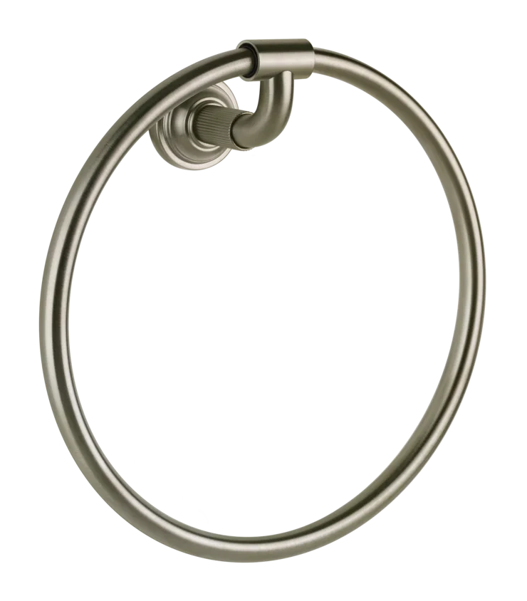 Полотенцедержатель Gessi Venti20 в отделке Finox Brushed Nickel представляет собой элегантное кольцо диаметром 222 мм. Его округлая форма и пропорции навеяны эстетикой начала XX века и придают интерьеру нотки сдержанной роскоши.