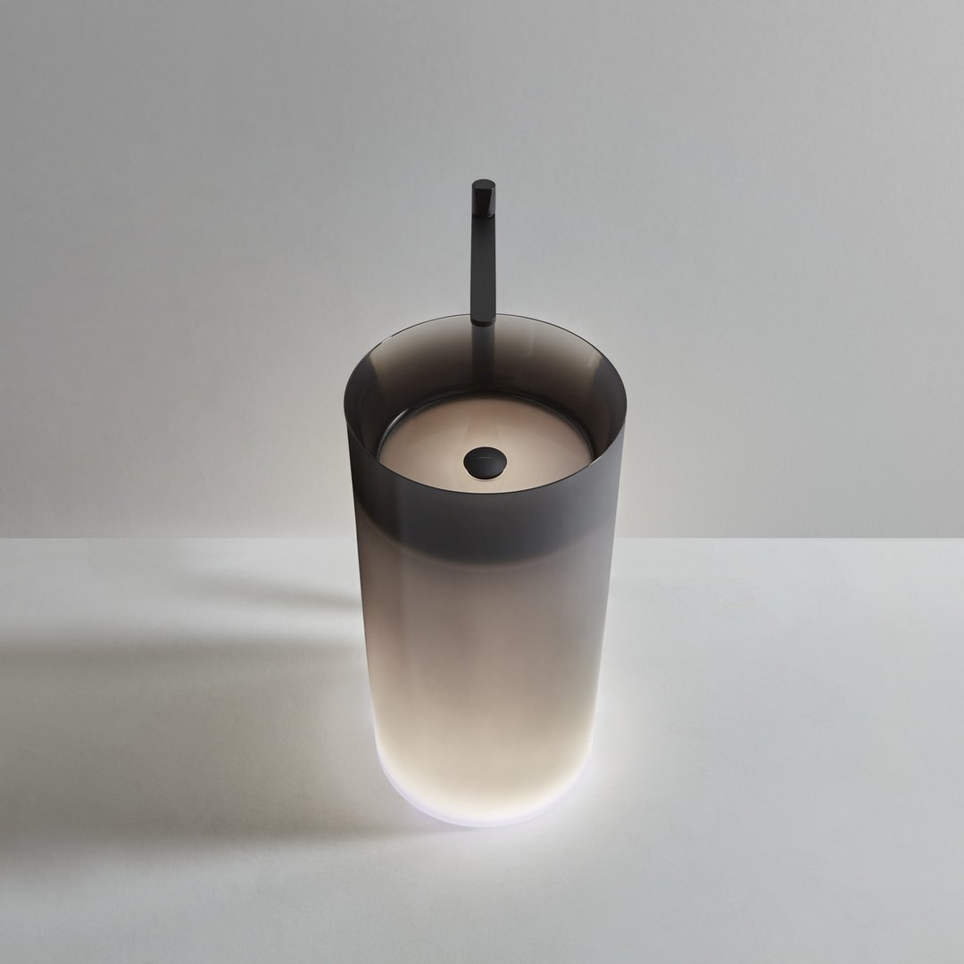 Узнать ценуНапольная раковина Antonio Lupi Breeze, изготовленная из Cristalmood, сохранила лёгкость и прозрачность, напоминающие дыхание ветра: тонкие линии, плавные переходы цвета и геометрически чистые контуры. В сочетании с цветом Fume поверхность обретает глубину и благородство, а графитовый самотечный донный клапан усиливает индустриальный характер данной модели. Подсветка проходит сквозь материал, создавая плавные световые потоки, будто изделие парит над поверхностью пола. Так раковина Antonio Lupi Breeze становится больше чем просто сантехникой: выразительным элементом интерьера, объединяющим воду, свет и прозрачность Cristalmood в едином, динамичном образе.