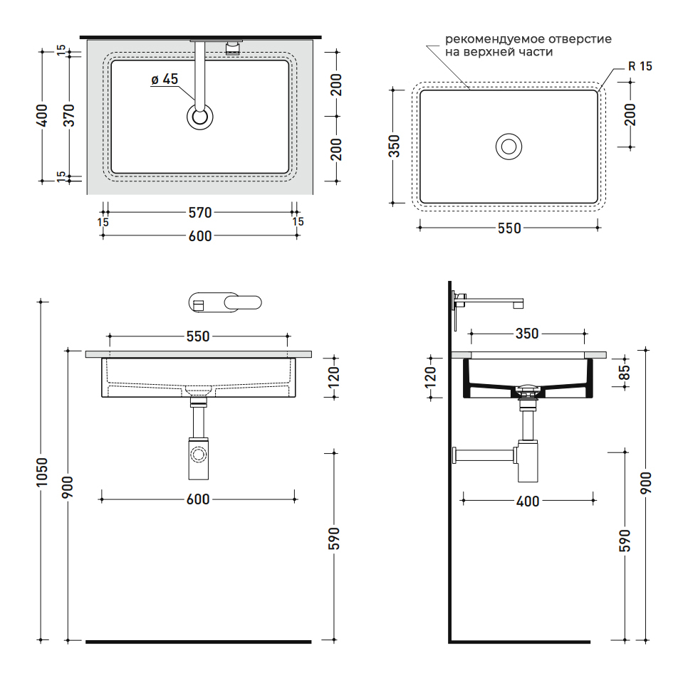 Раковина Flaminia Miniwash с размерами 600x420 мм и высотой 130 мм предназначена для встраивания снизу в столешницу. Такой способ монтажа позволяет сохранить ровную поверхность, подчеркнуть аккуратность дизайна и создать больше рабочего пространства.