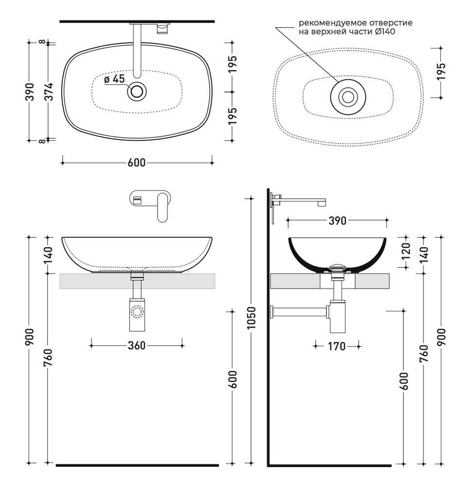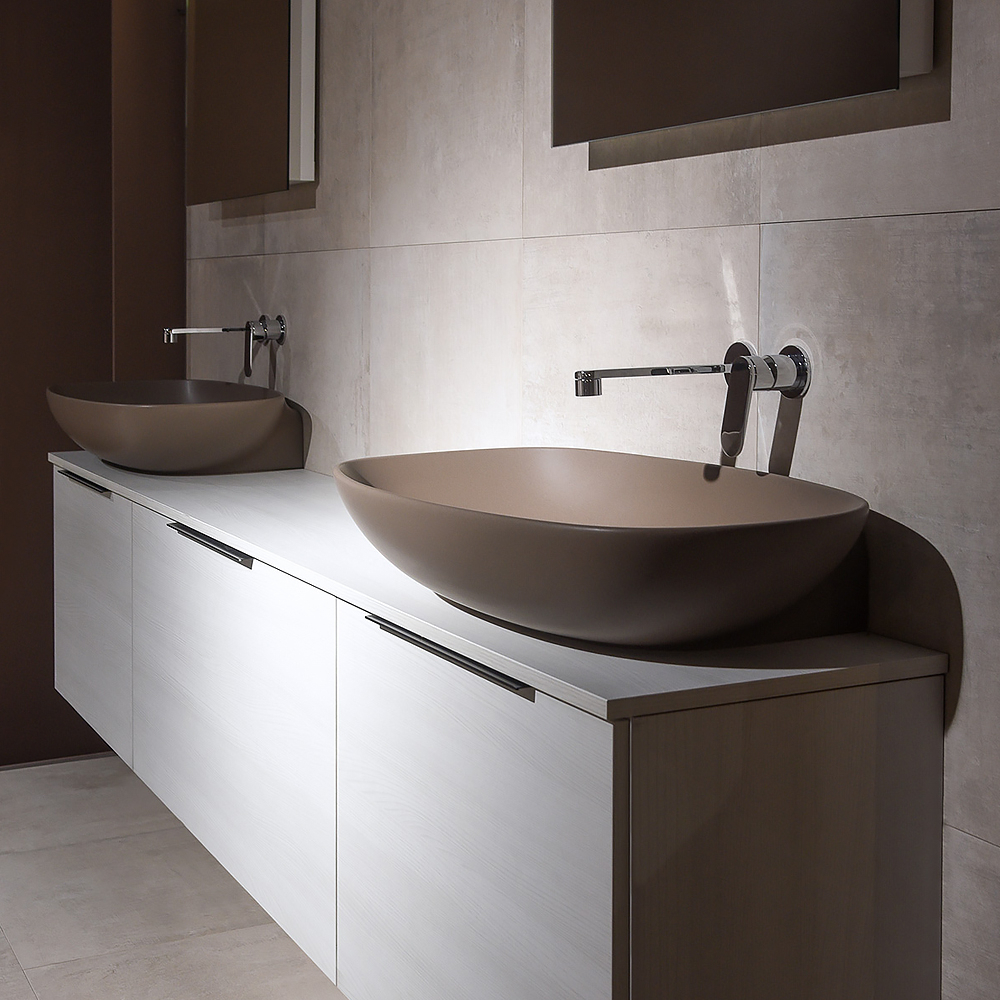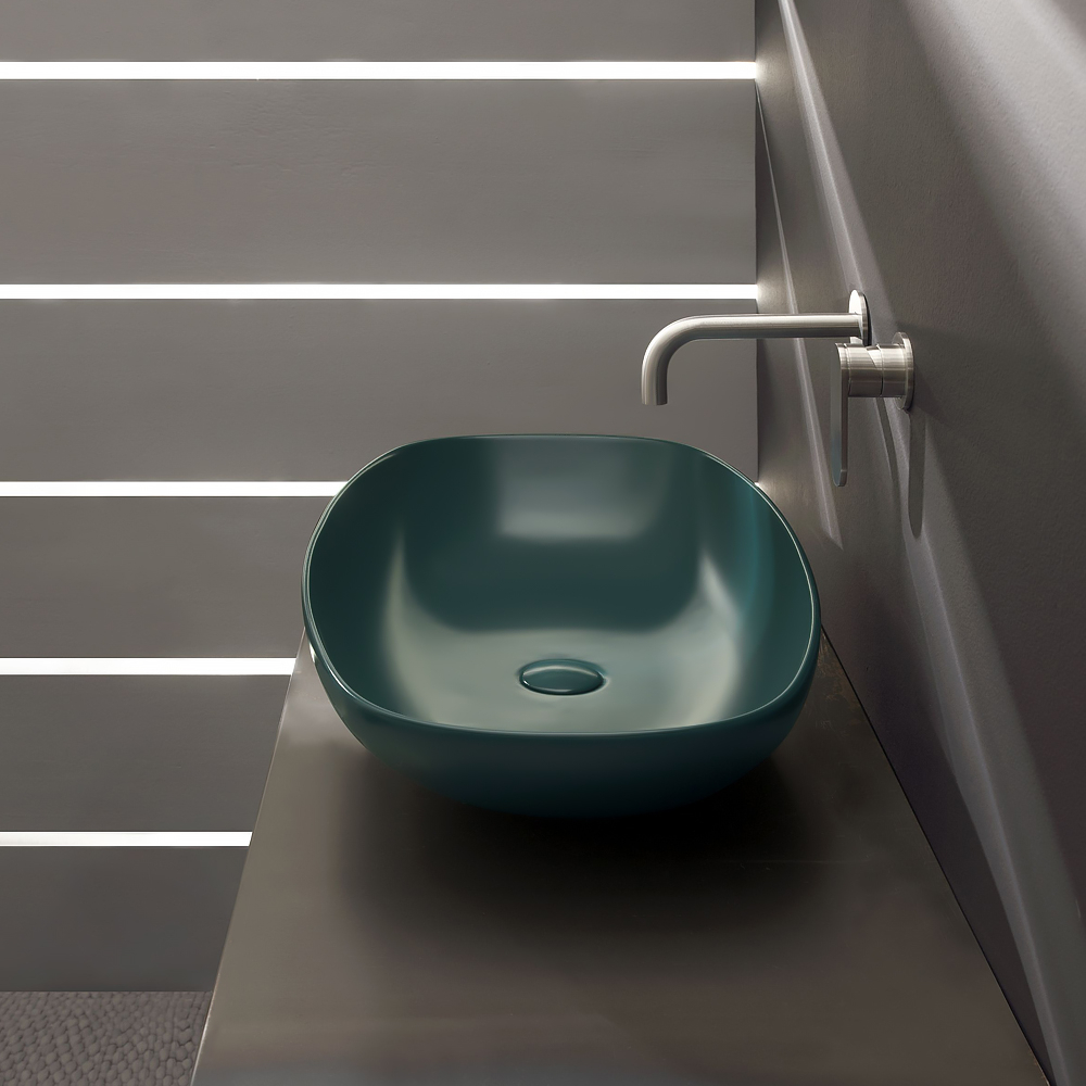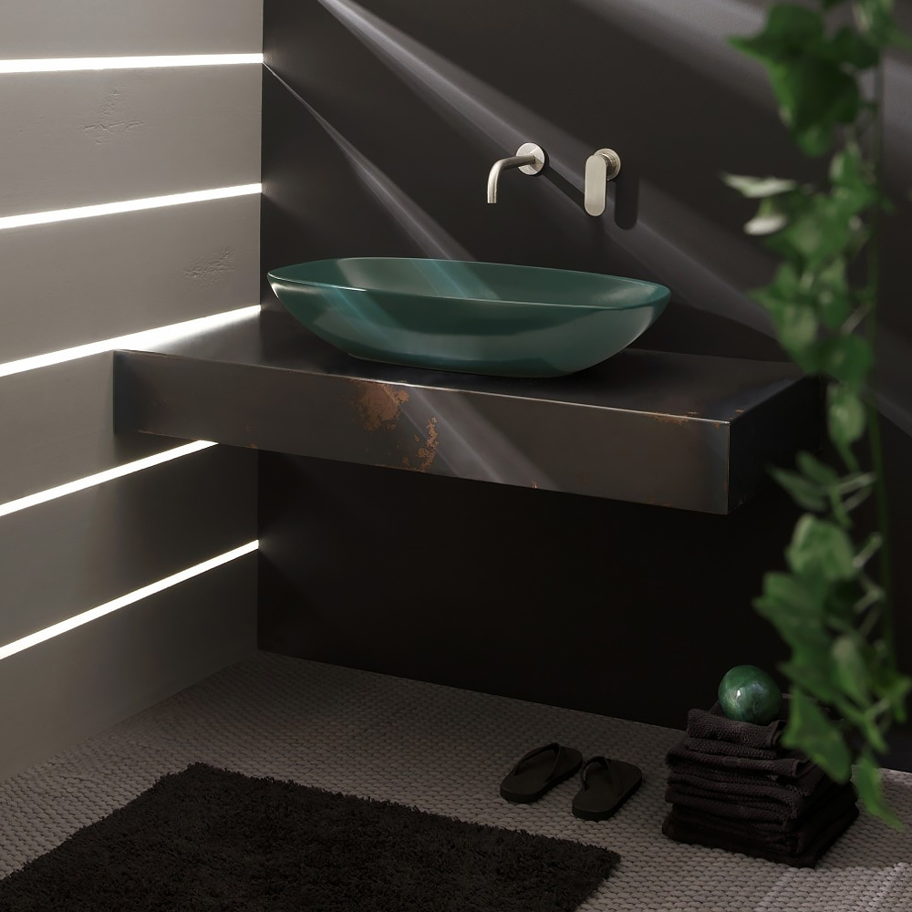 Раковина Flaminia Nuda Slim размером 600x390 мм и высотой 140 мм предназначена для установки на столешницу или тумбу. Её тонкие стенки и аккуратные пропорции создают лёгкий и современный силуэт. Отсутствие отверстия под смеситель позволяет использовать настенный или отдельно стоящий вариант, что открывает больше свободы для выбора комплектации.